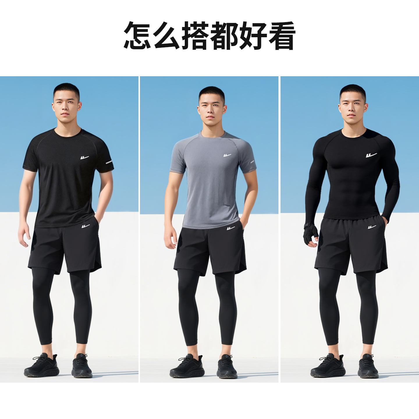 回力紧身裤男士高弹训练压缩裤跑步运动马拉松篮球速干打底裤套装