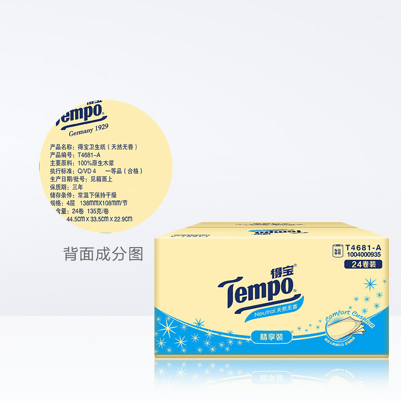 【下拉享优惠】得宝卷纸有芯无香厕纸卷筒纸整箱135克*24卷