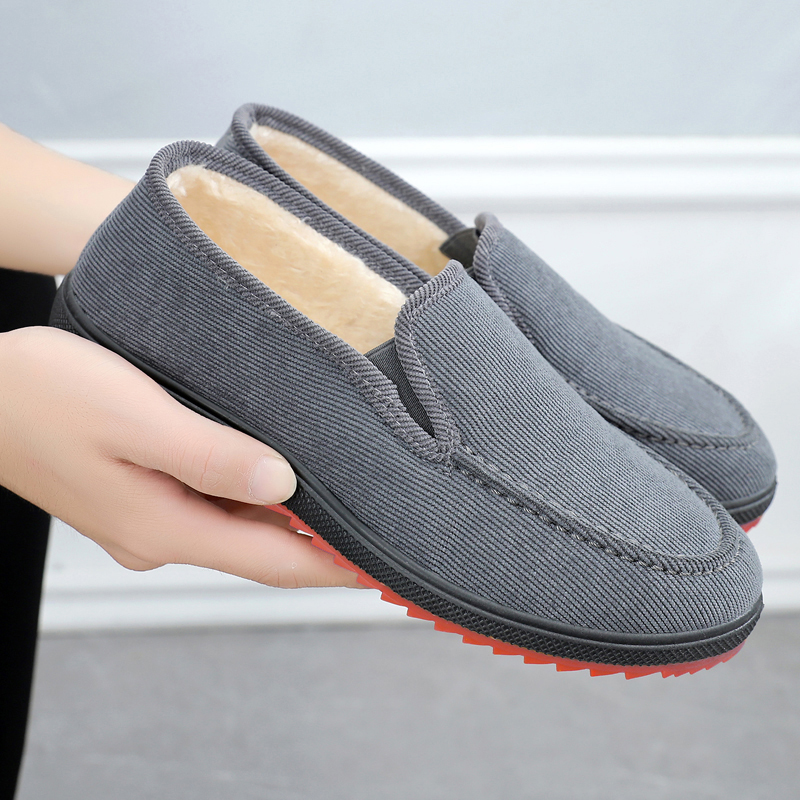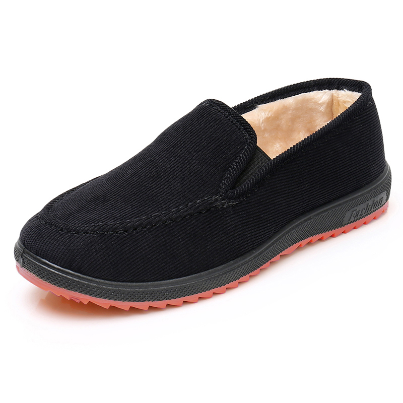 冬季牛筋底老北京布鞋男套脚加绒加厚保暖休闲防滑黑色圆头中老年