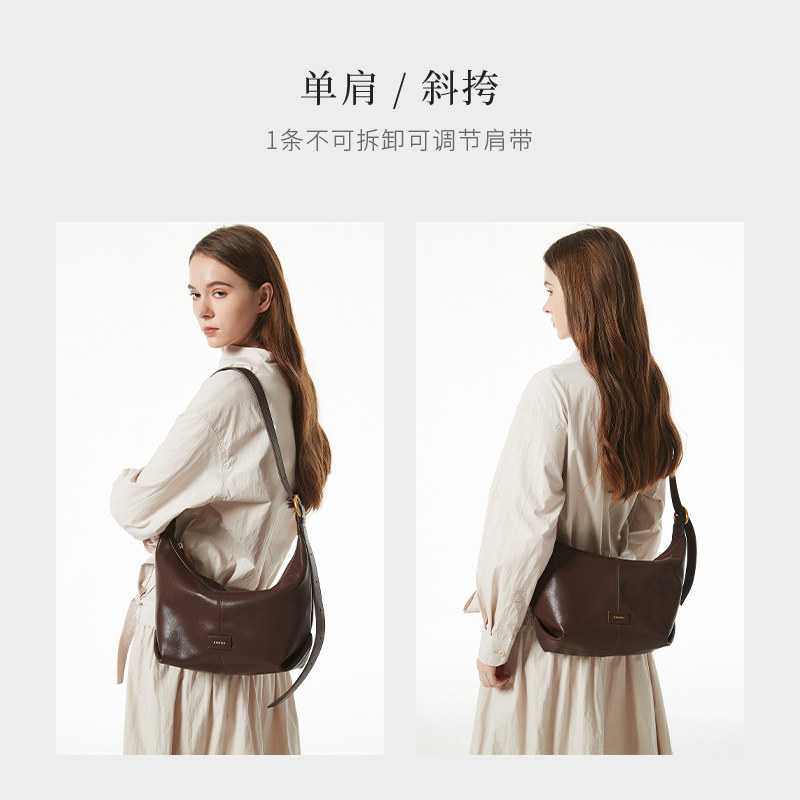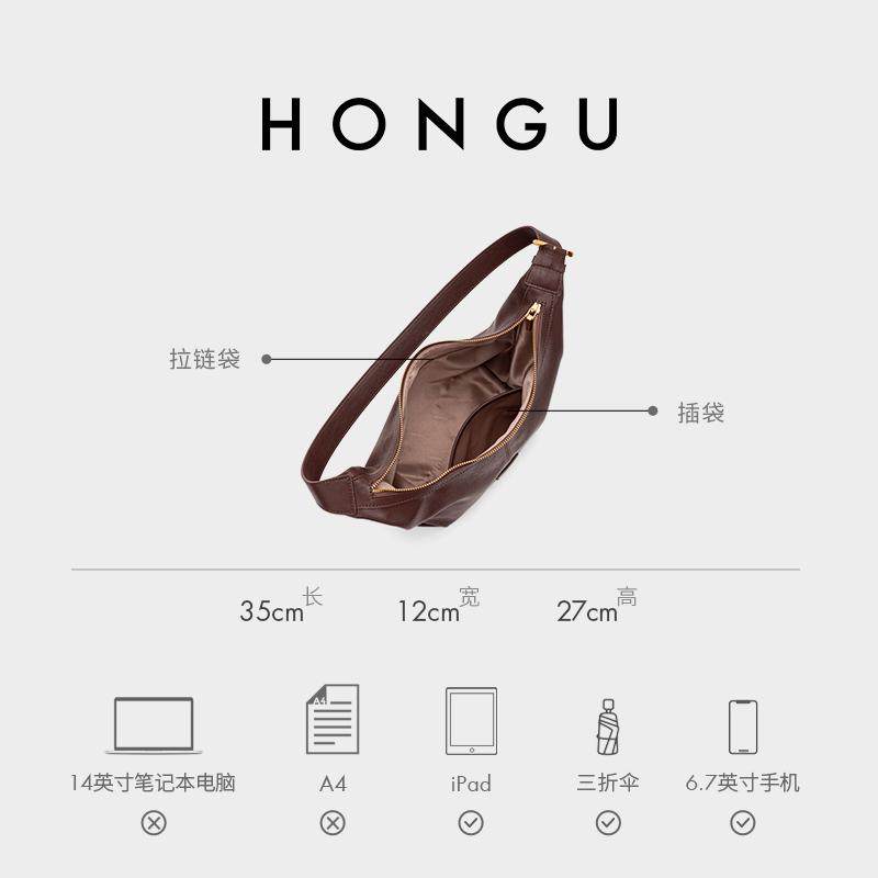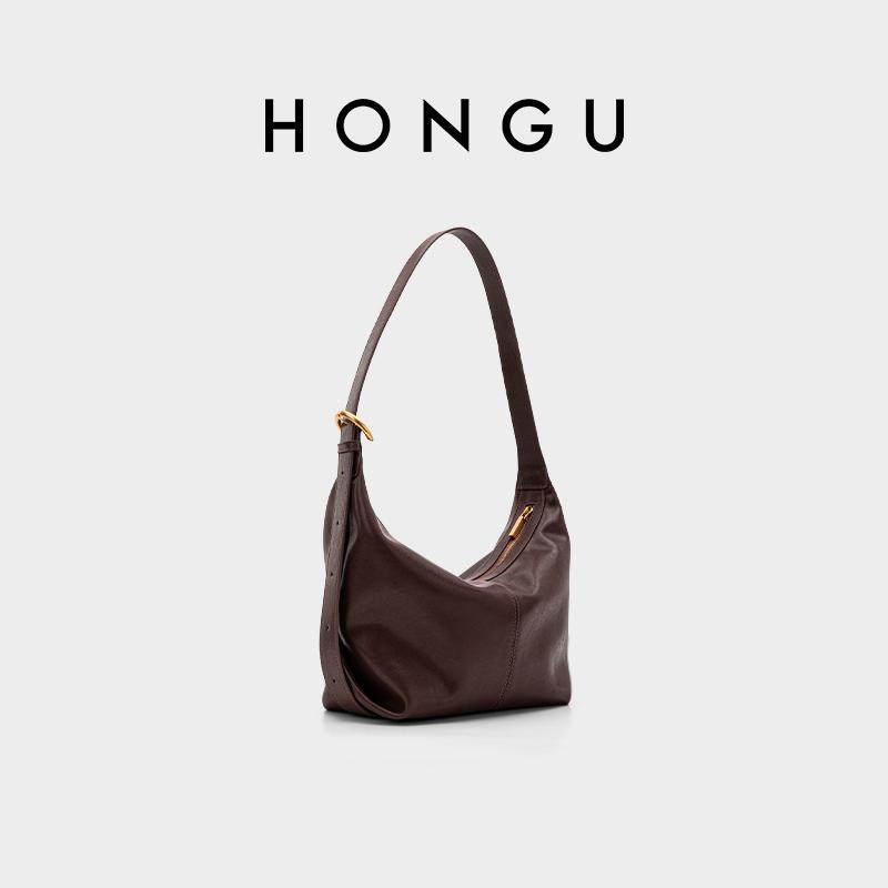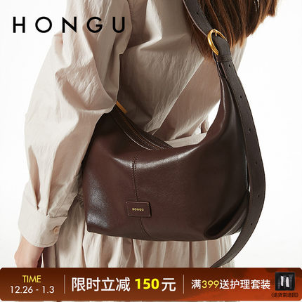 HONGU/红谷饺子包单肩斜挎包包女休闲亮面百搭复古女包时髦酒红包