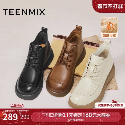 天美意复古厚底英伦加绒马丁靴女鞋子时装靴短靴皮靴2025冬季新款
