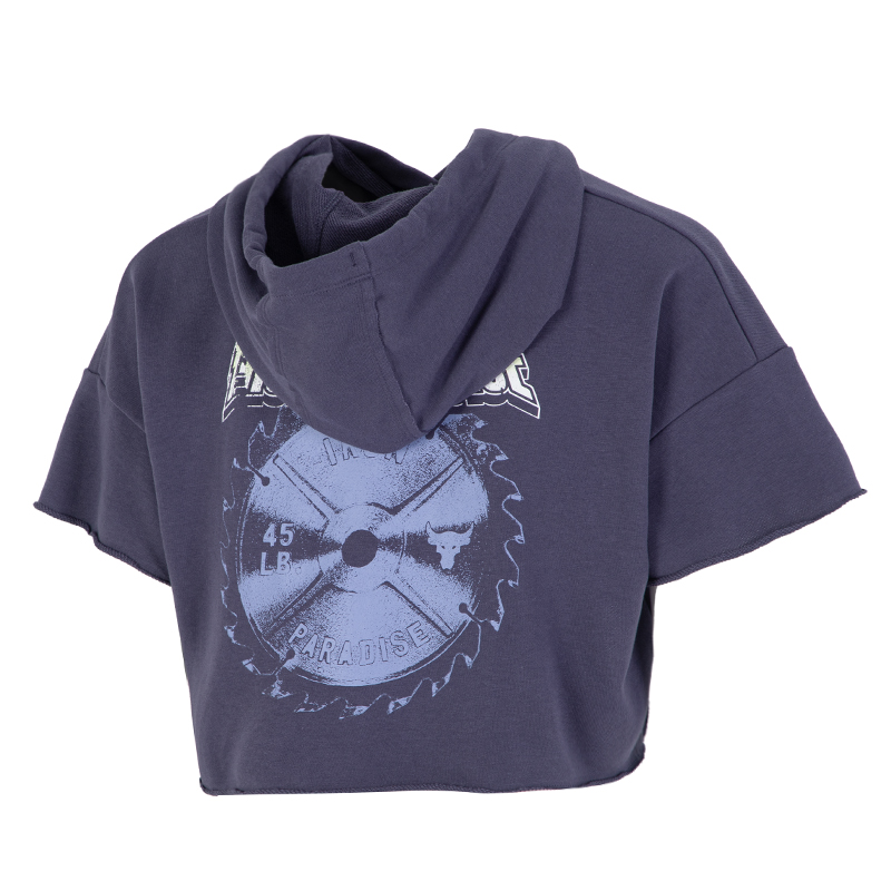 安德玛女装新款Project Rock强森连帽卫衣短款短袖运动跑步套头衫