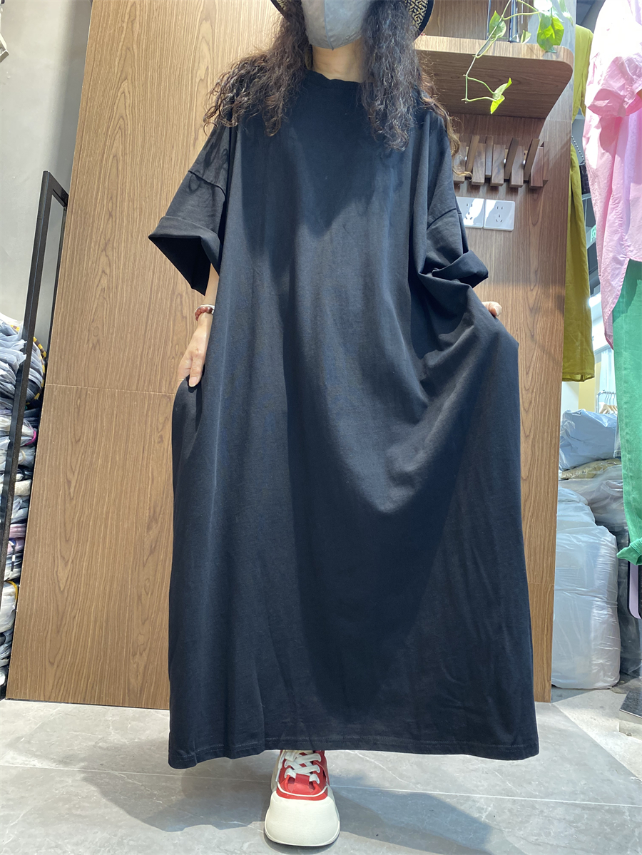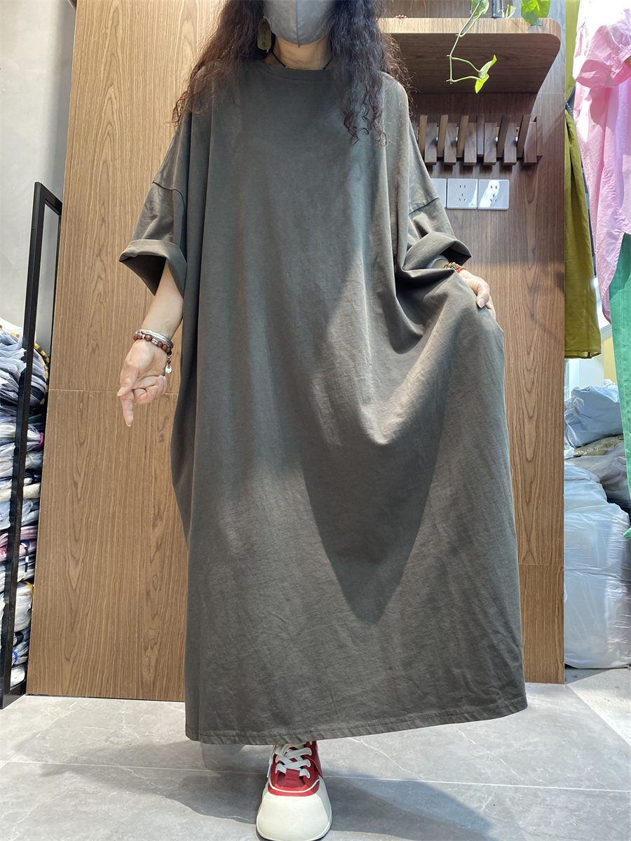 纯色布衣长裙 茶服宽松文艺纯棉大码宽松夏季短袖长褂禅意连衣裙