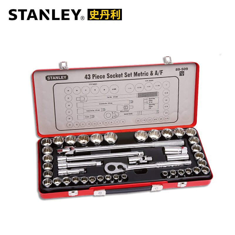 。STANLEY汽修组套43件12.5MM系列公英制套筒扳手套装89-509-22
