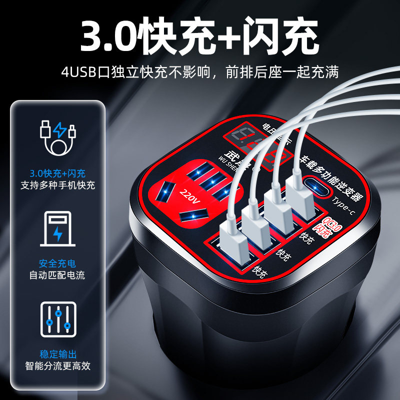 车载逆变器12v24v通用转220v大功率智能充电逆变转换器手机充电器