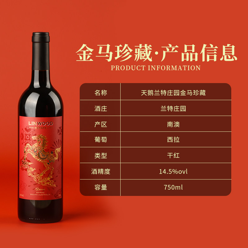 马年生肖天鹅兰特庄园原瓶进口金马珍藏西拉干红葡萄酒整箱送礼