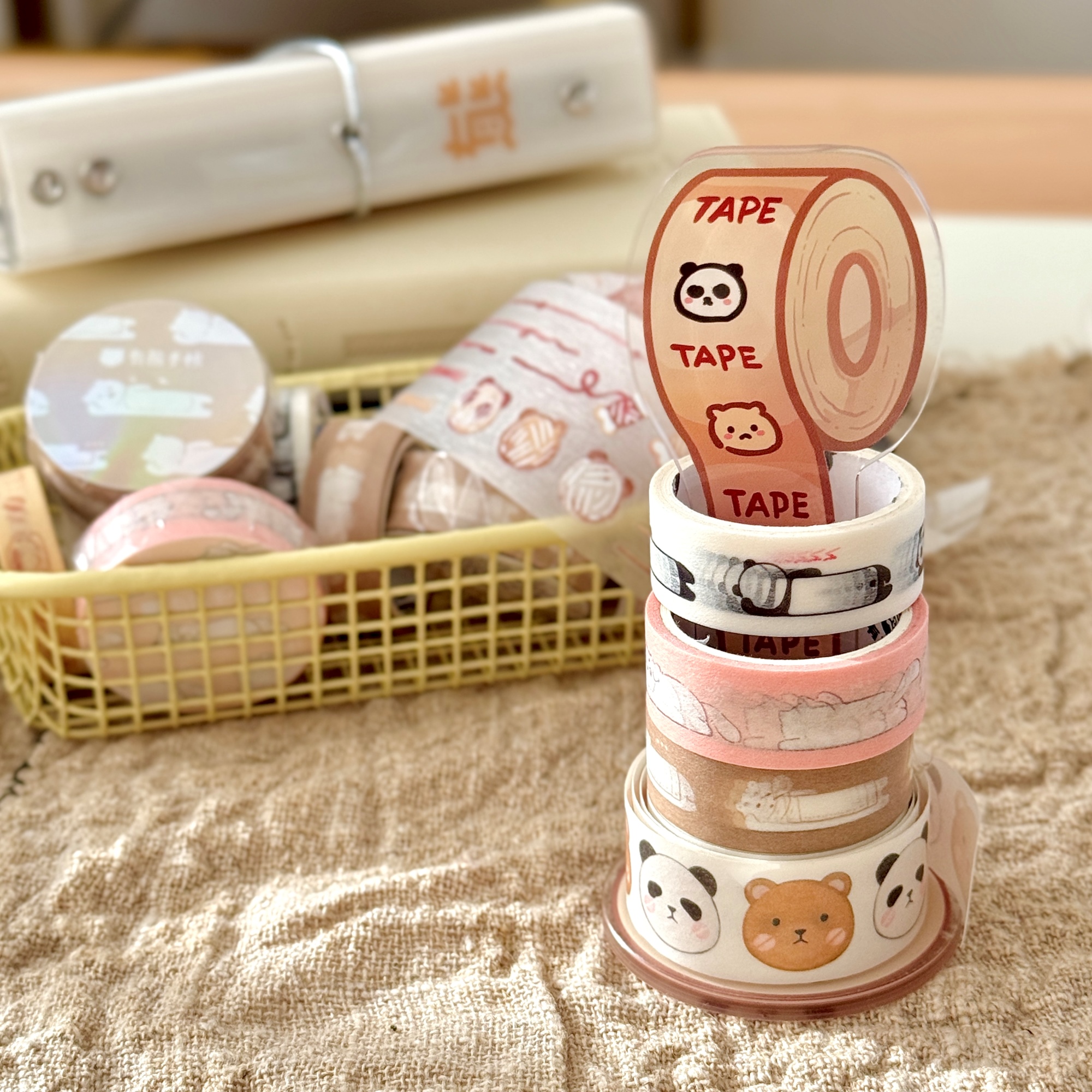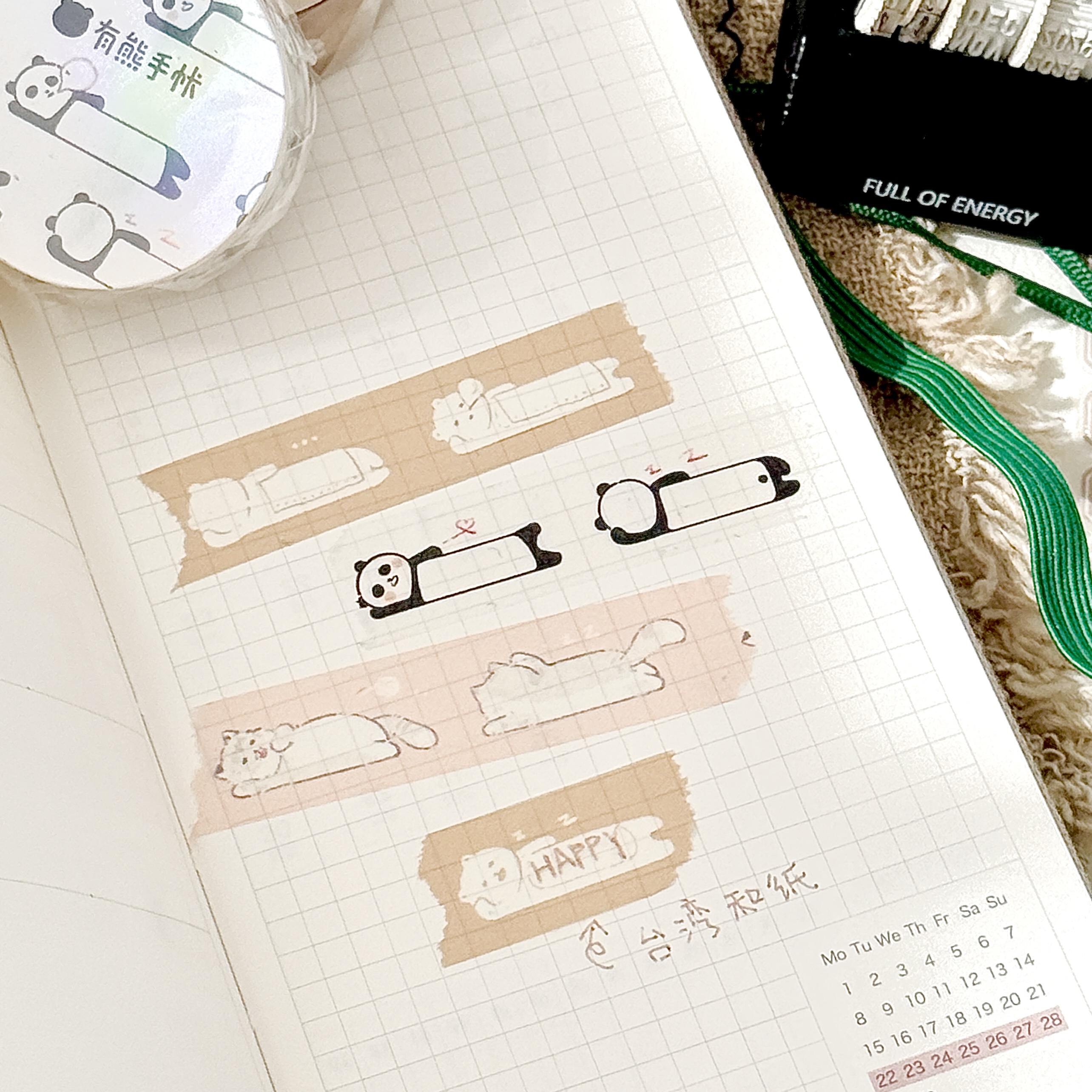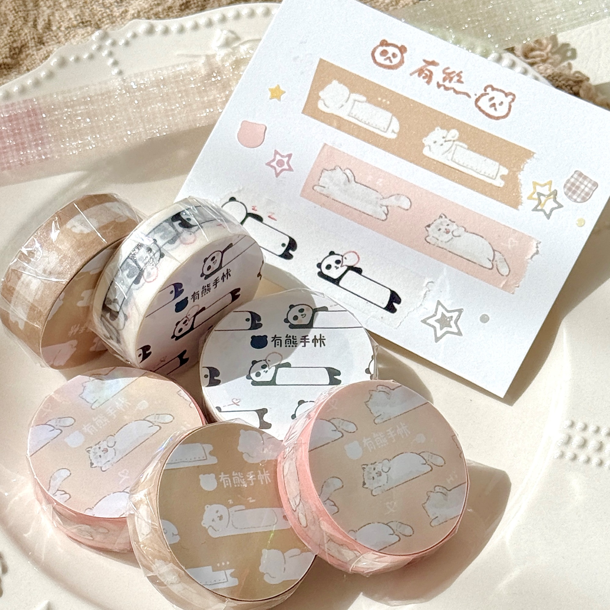 有熊躺躺平胶带台湾和纸基础款细款拉条整卷手账装饰原创插画设计