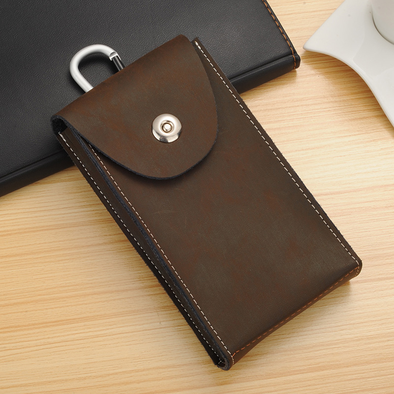 穿皮带腰挂双手机套二合一真皮两个手机双层收纳包竖款牛皮袋男士