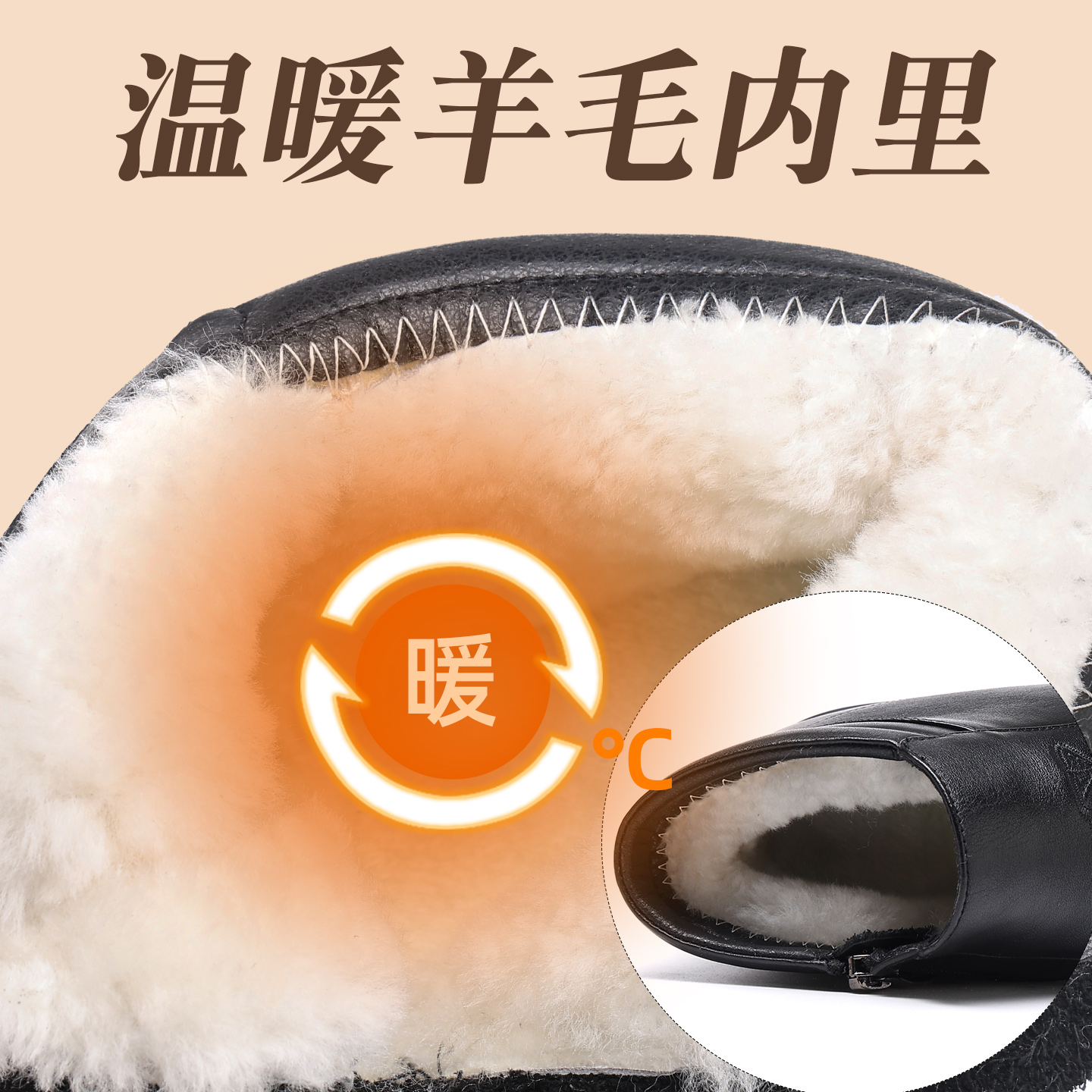 加大42号圆头女短靴41特大码中年老人保暖棉皮鞋妈妈真皮羊毛靴冬