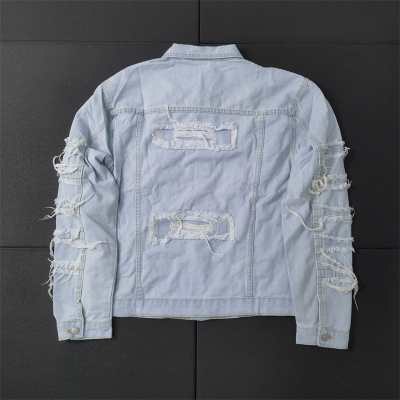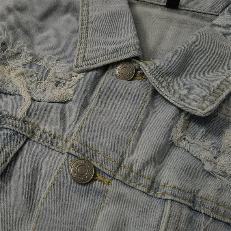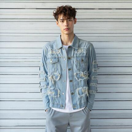 街头新潮重工水洗浅蓝牛仔夹克男