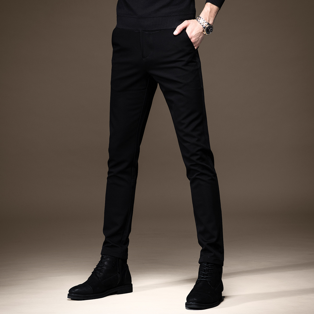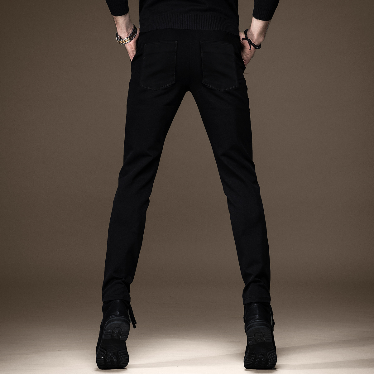 法国秋冬款纯黑色牛仔裤男