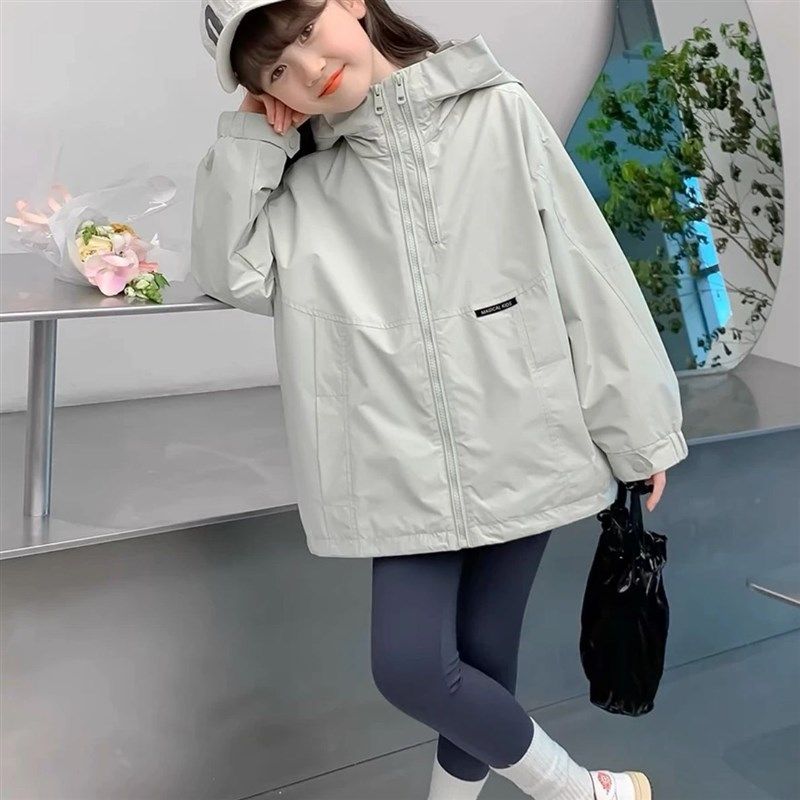 女童春季外套洋气儿童运动连帽冲锋衣春秋薄款夹克女大童春装新款