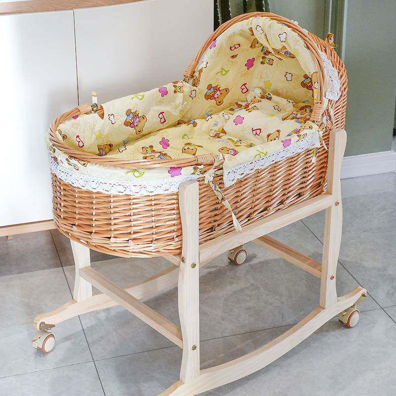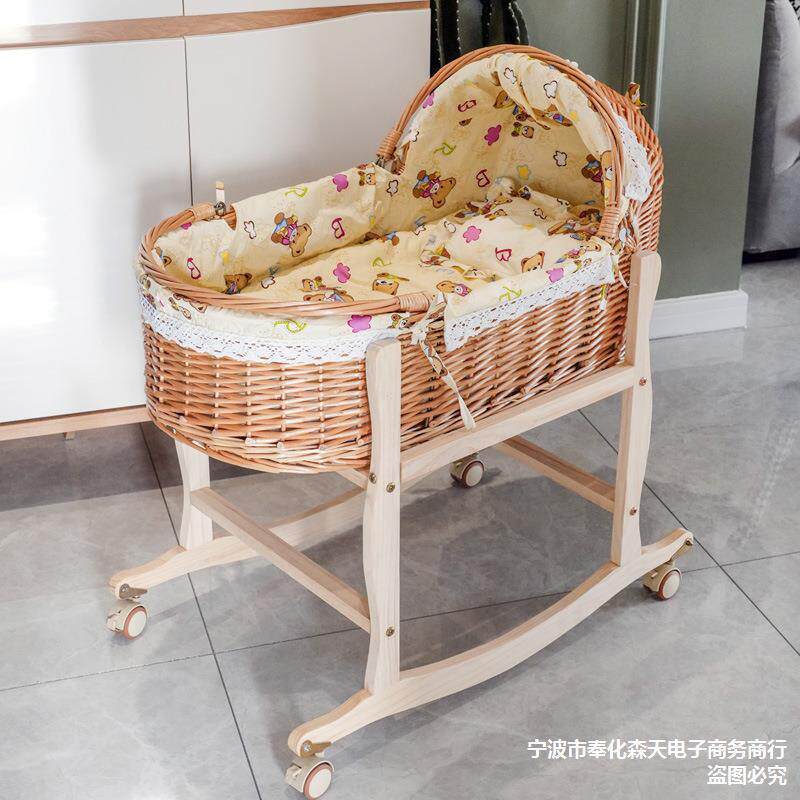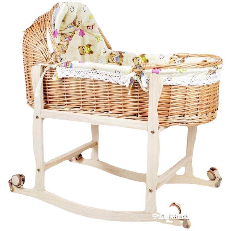 藤编婴儿摇篮床新生儿外出便携手提篮车载安抚睡篮宝宝床摇篮实木
