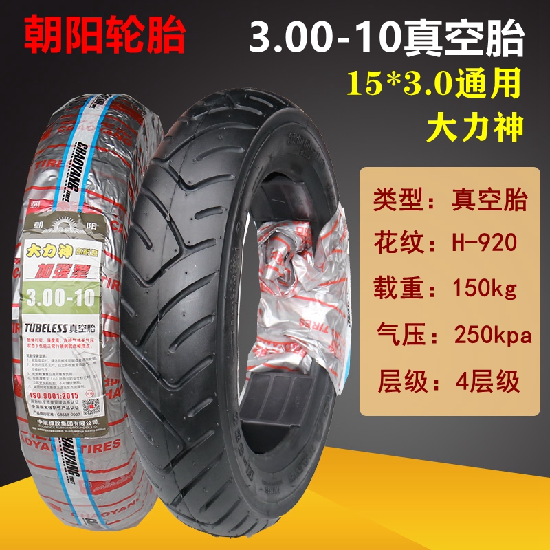 朝阳轮胎3.00-10电动车摩托车外胎300-10大力神6层钢丝加厚真空胎