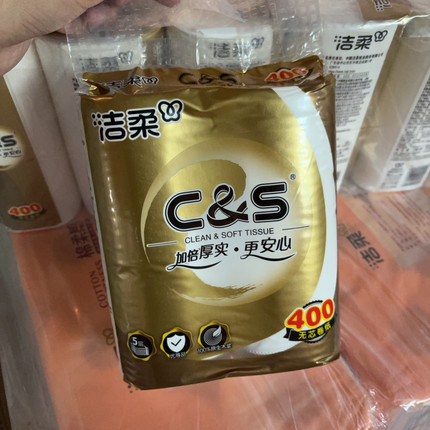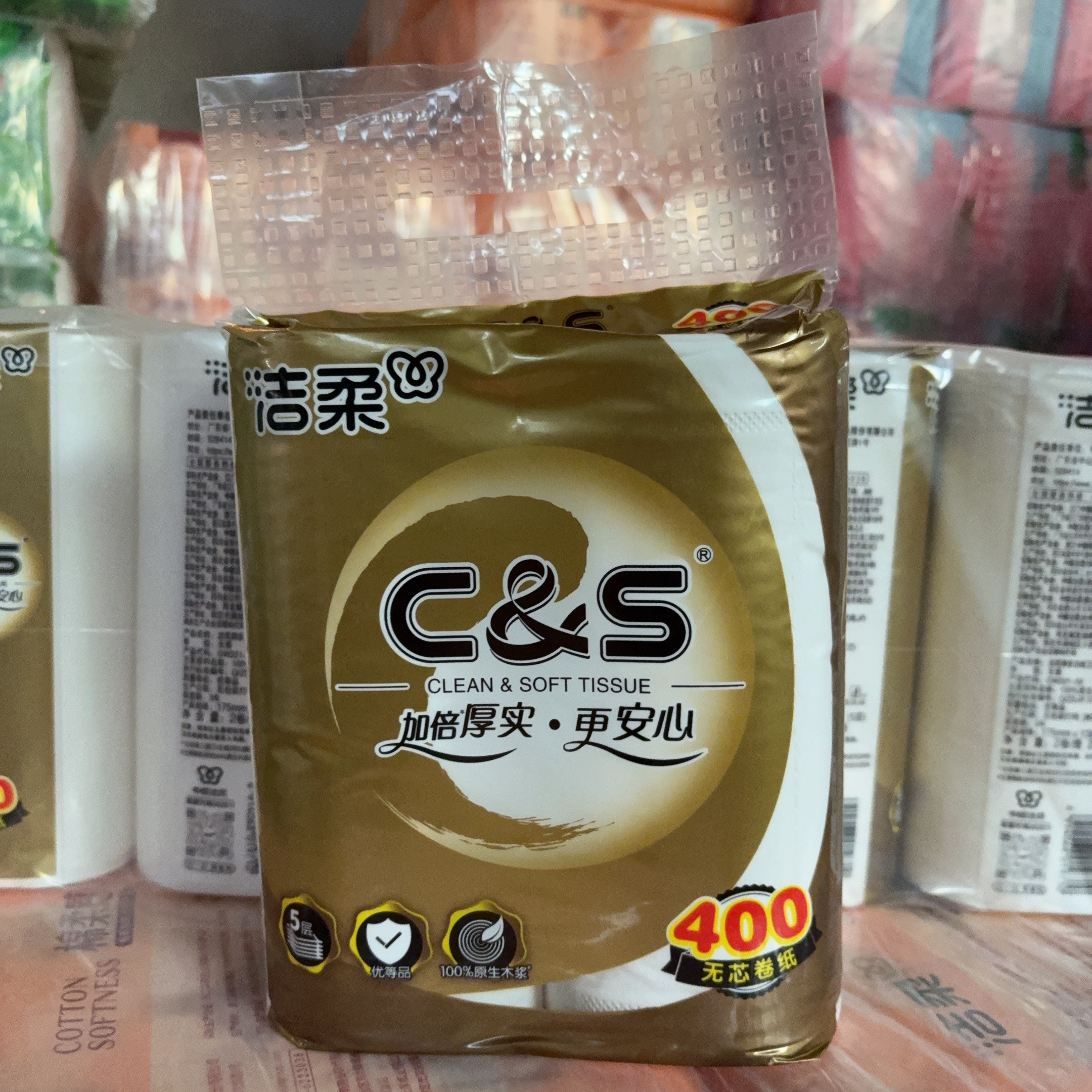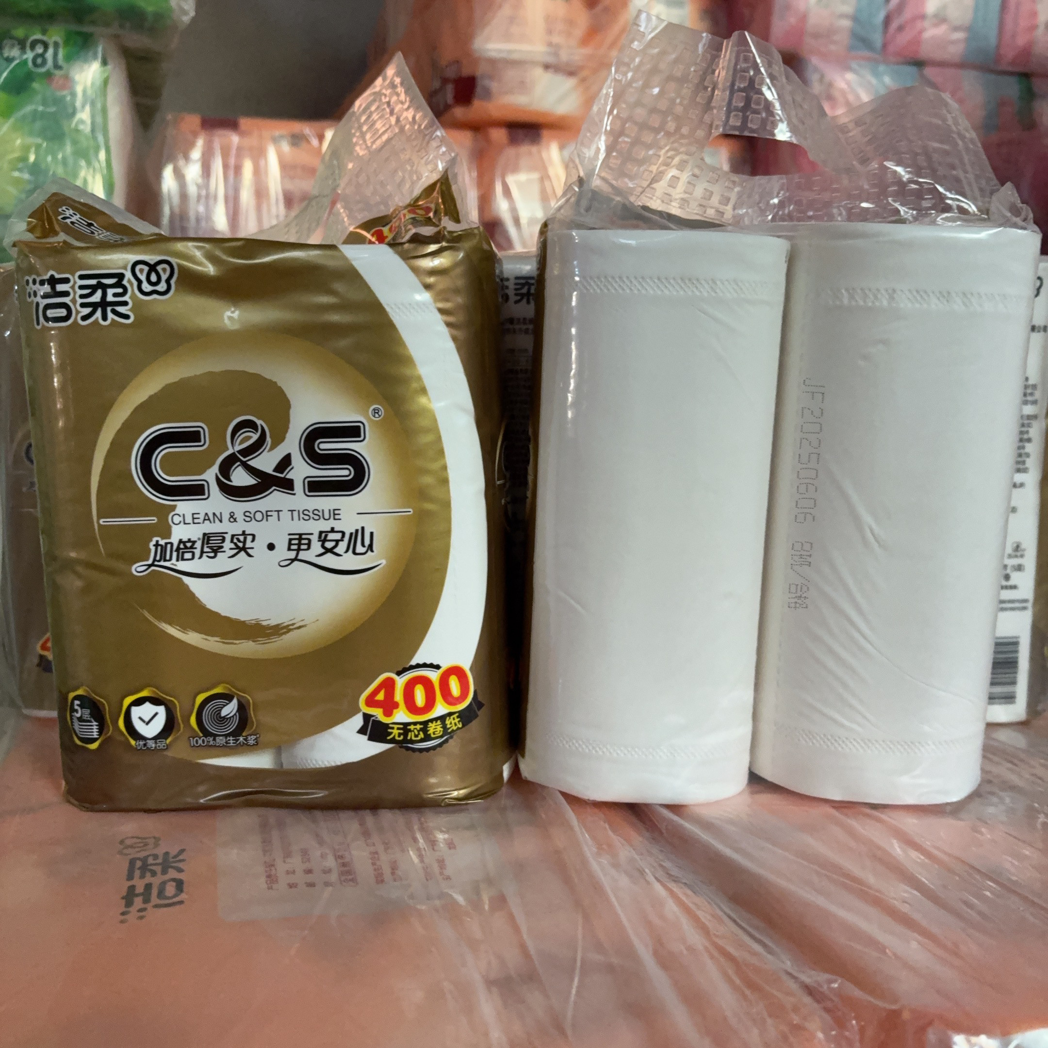 洁柔对卷卷纸400克两卷无芯卷纸5层加倍厚实更安心厕纸家用出门带