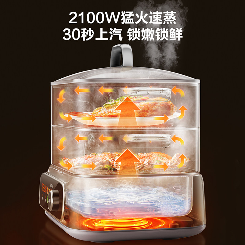 苏泊尔有钛电蒸锅家用多功能智能预约蒸煮一体三层18L不锈钢蒸笼