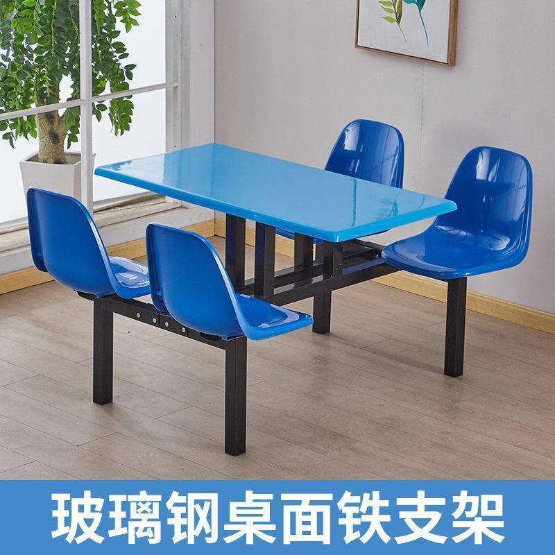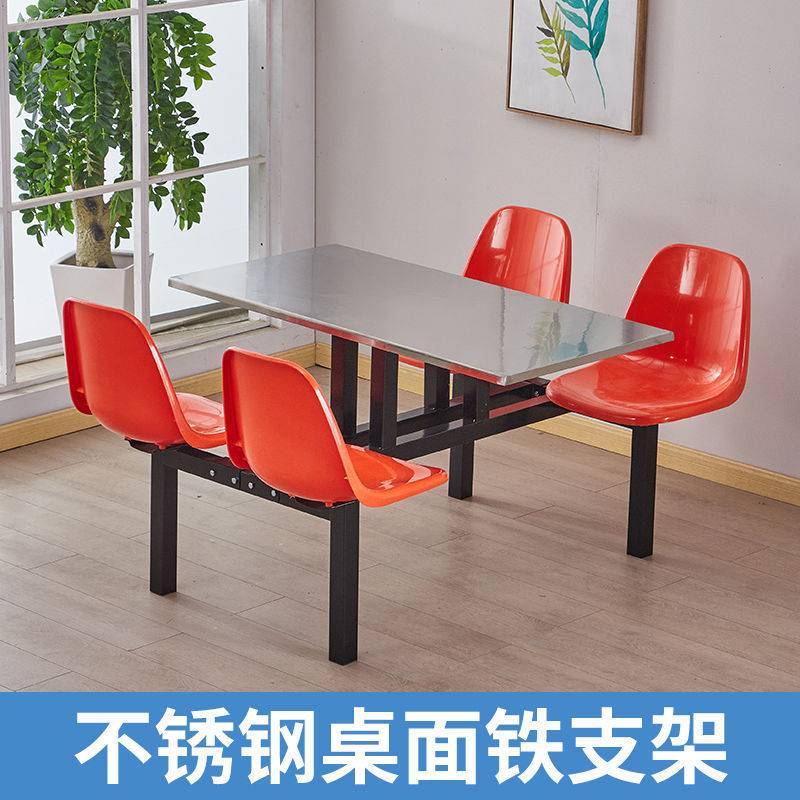 快餐店餐厅食堂连体餐桌椅组合4人位工厂员工不锈钢食堂靠背餐桌