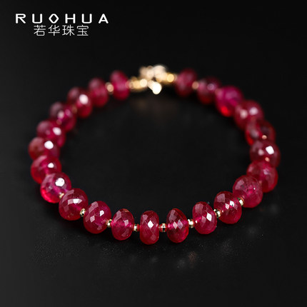 若华鸽血红宝石手链18k金