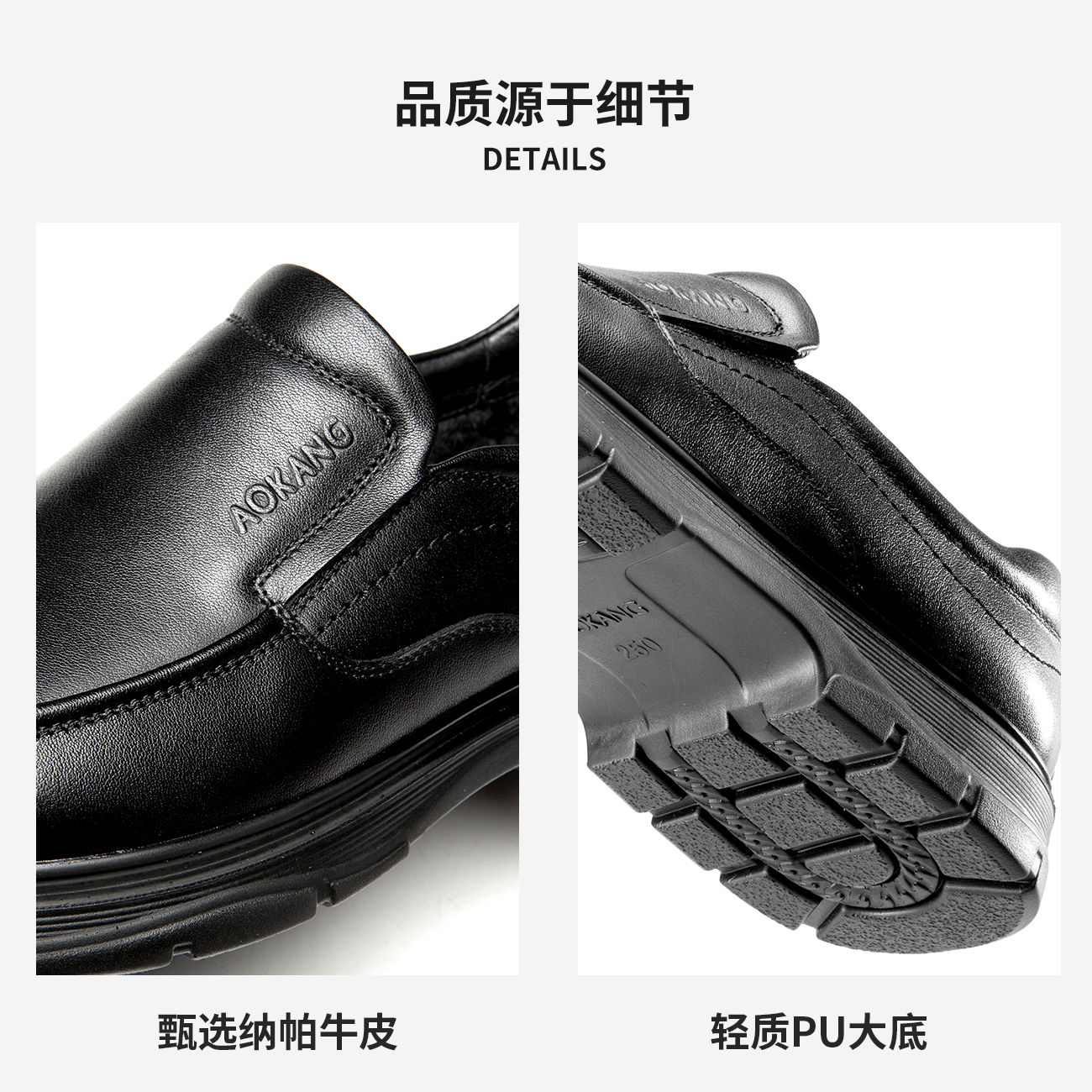 奥康男鞋冬季低帮加绒套脚皮鞋厚底防滑爸爸休闲鞋一脚蹬保暖棉鞋