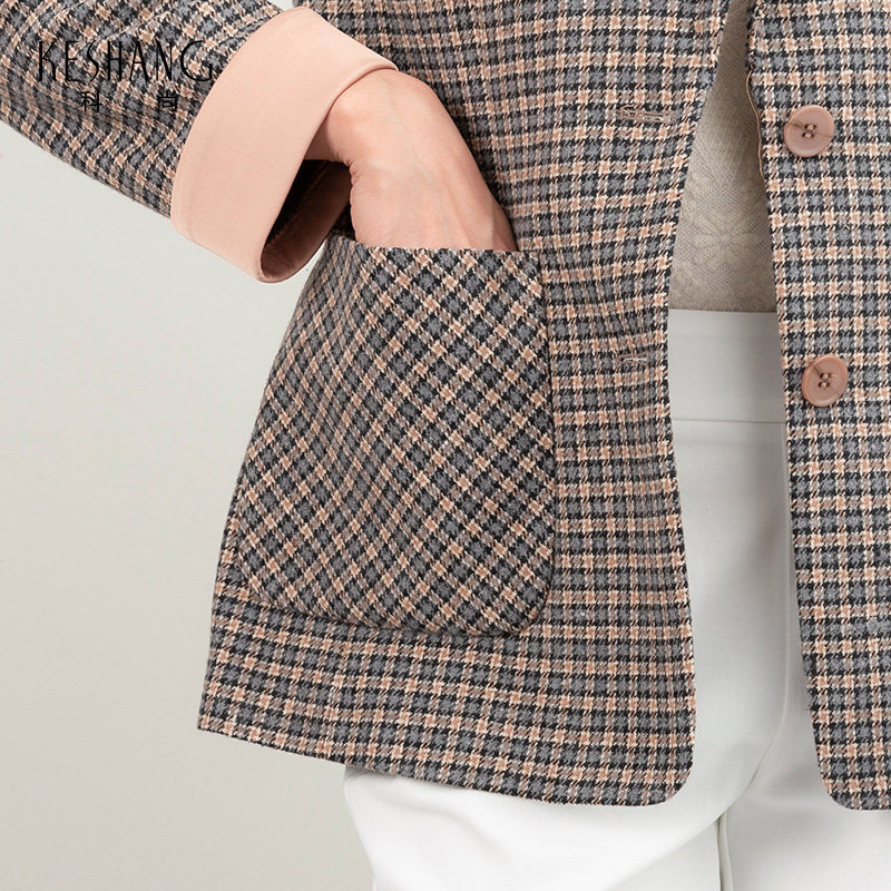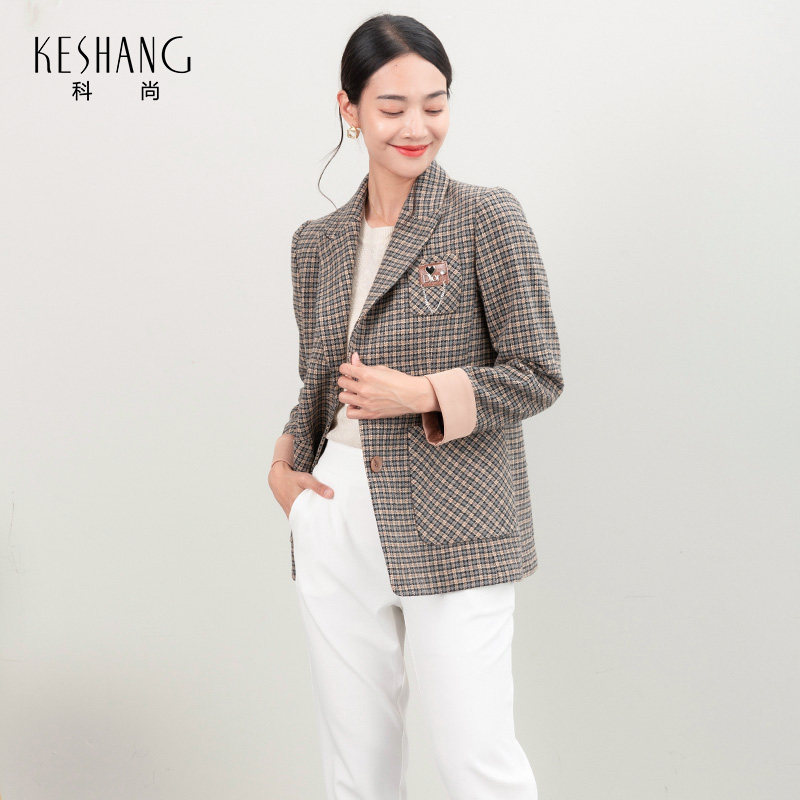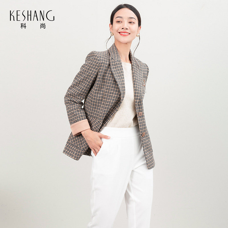 科尚格子西装外套女2024秋季新款休闲上衣复古英伦单排扣呢子大衣