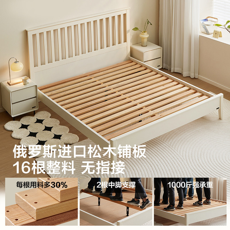 【品牌秒杀】全友家居1米8双人床小户型卧室实木床铺板1米5单人床