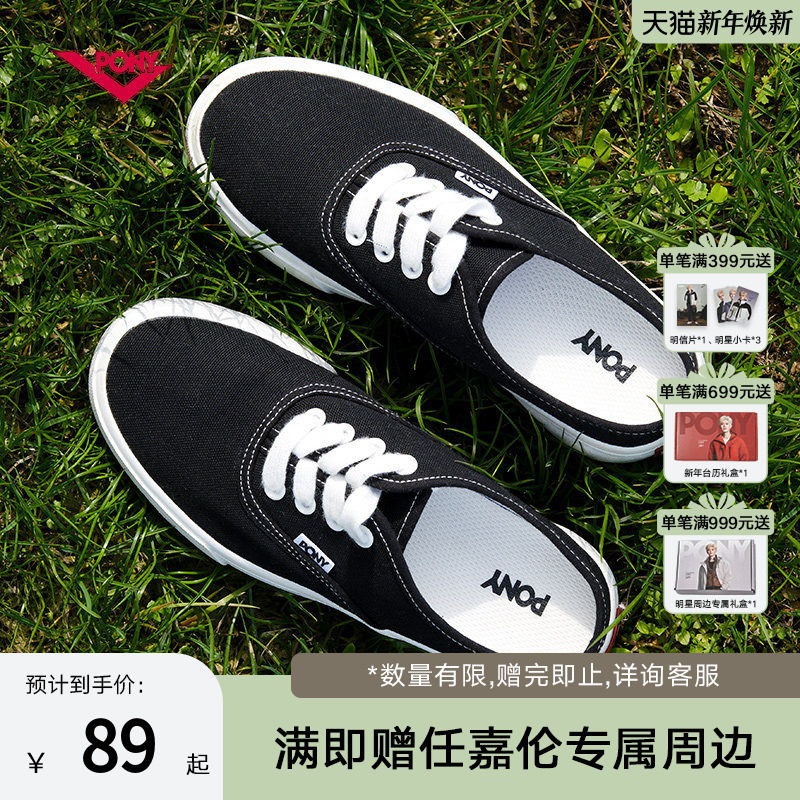 PONY帆布鞋女款春夏休闲鞋一脚蹬轻便舒适百搭女鞋时尚242W1SS01