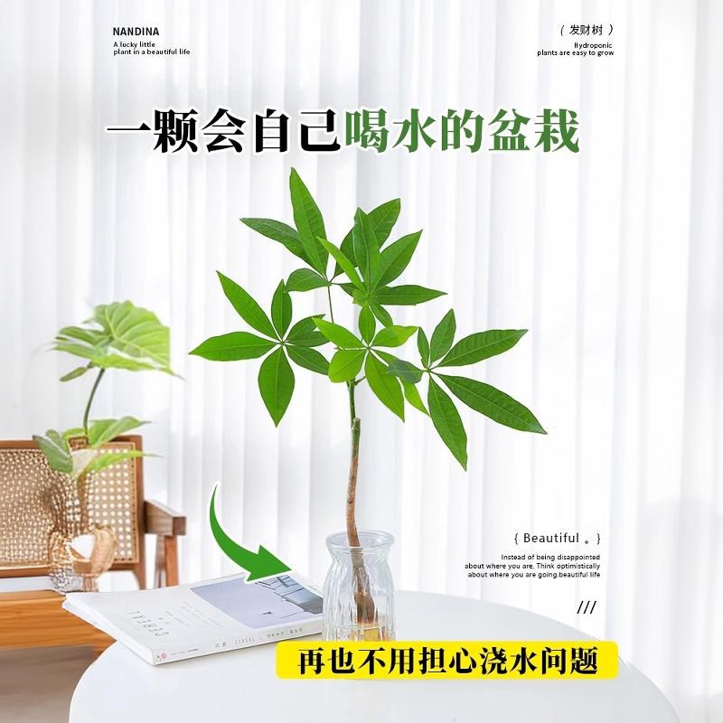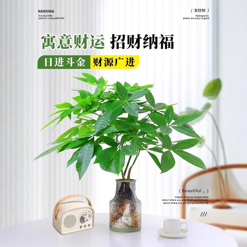 现货速发水培发财树小盆栽室内植物客厅招财树办公室盆景四季好养