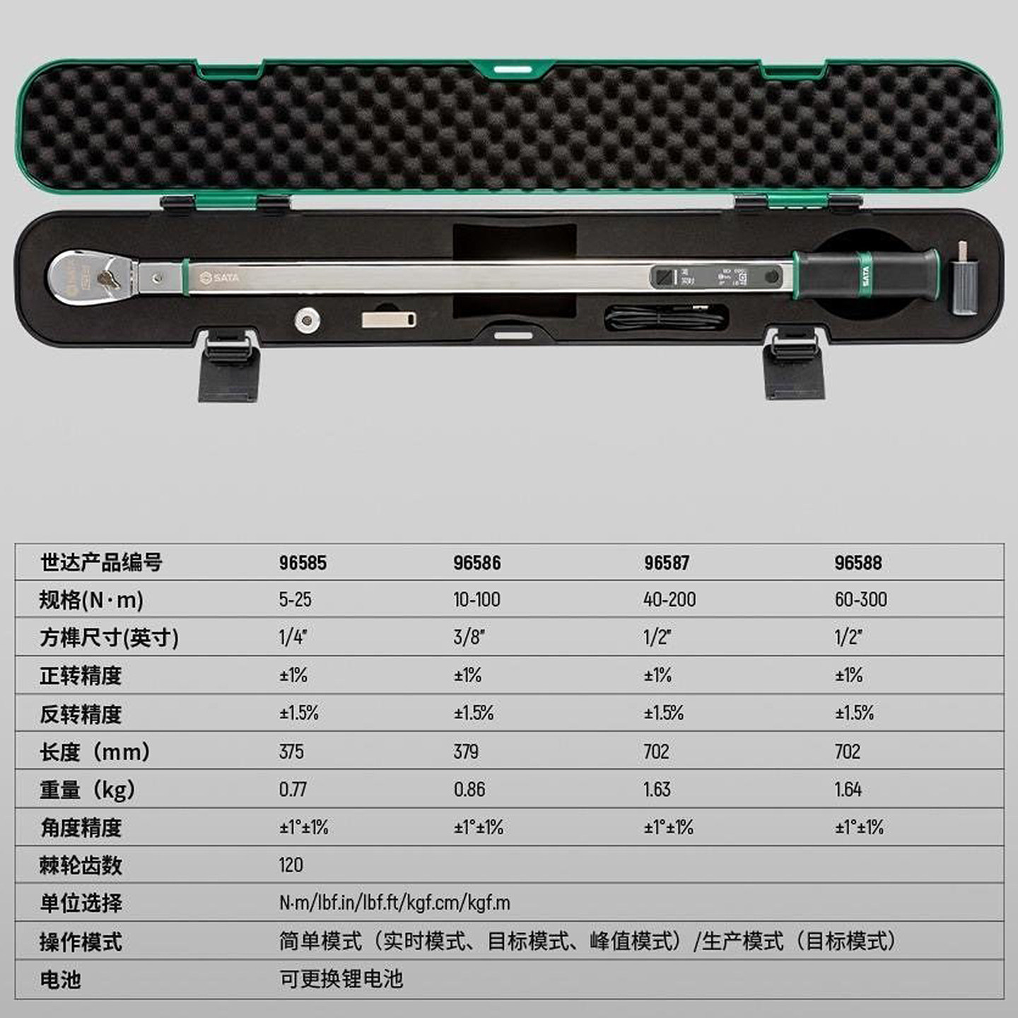 世达无线电子扭力扳手1/4系列工业级扭力扳手5-25N·m96584-96586