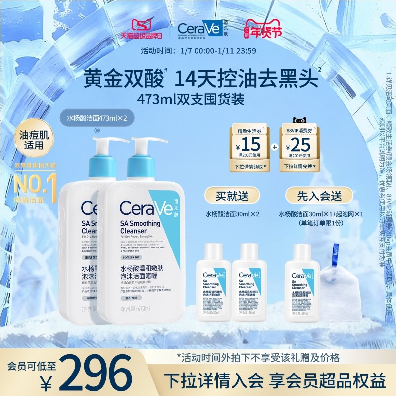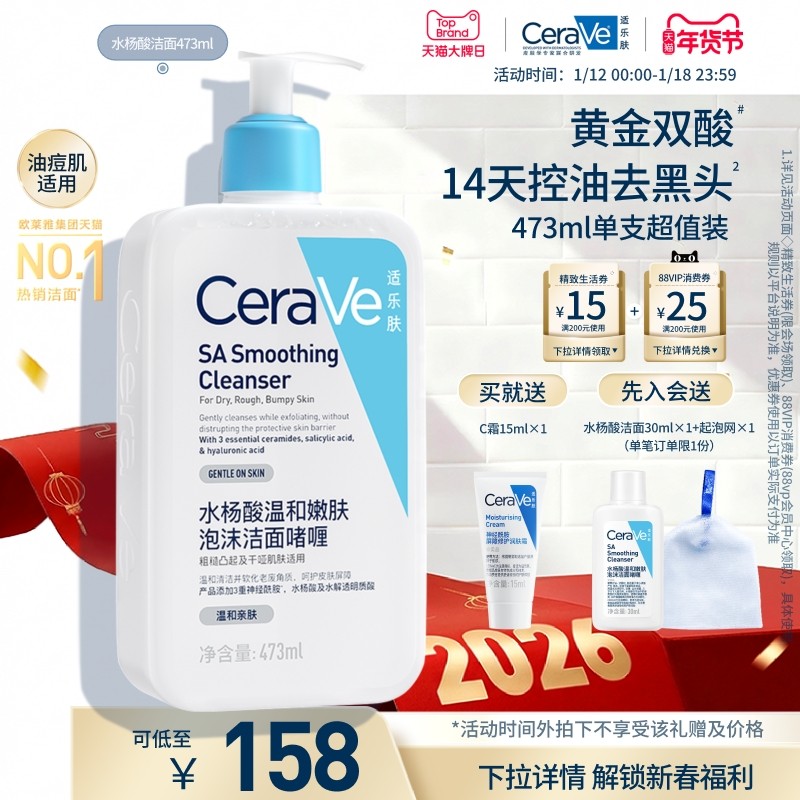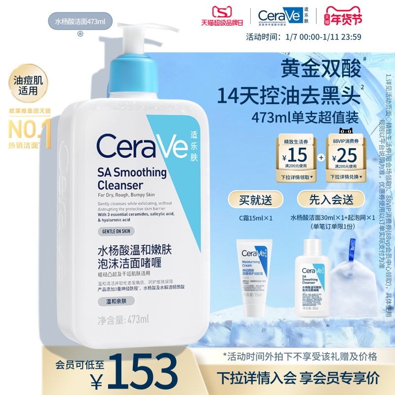 CeraVe适乐肤水杨酸洁面啫喱氨基酸痘肌油皮洗面奶祛痘控油男女