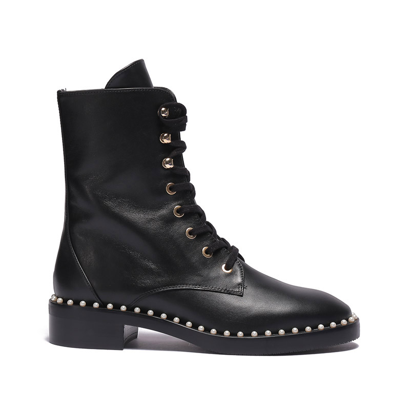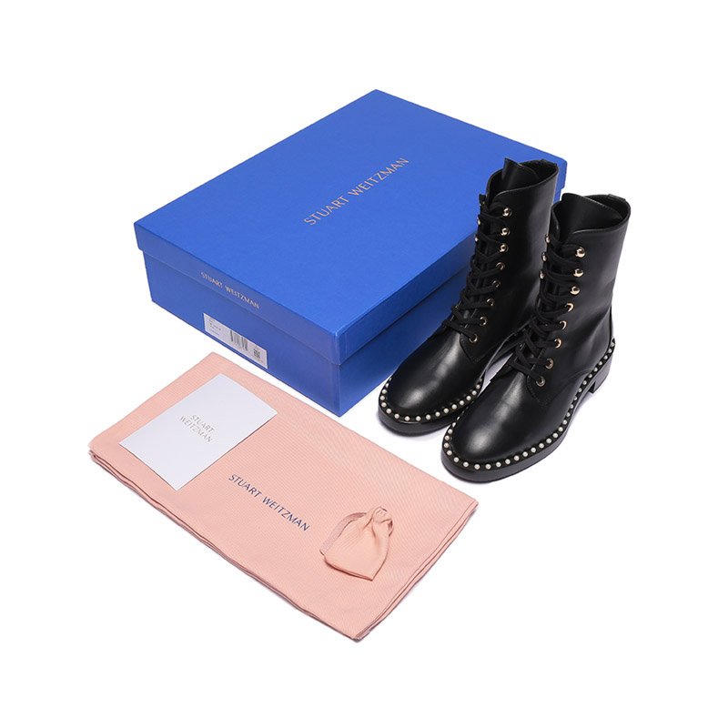 Stuart WeitzmanSW女士珍珠系带低方跟短靴骑士靴马丁靴子SONDRA