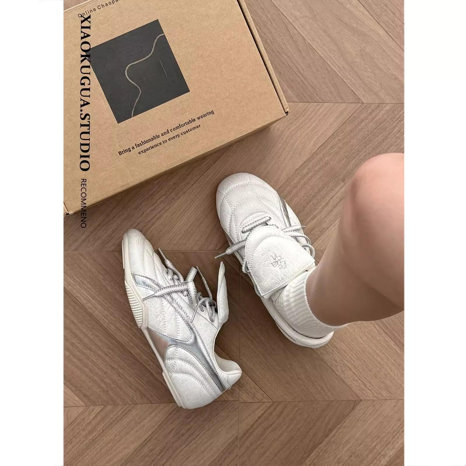 德训鞋女2025春季新款女鞋复古平底阿甘鞋翻盖休闲运动鞋小白鞋子