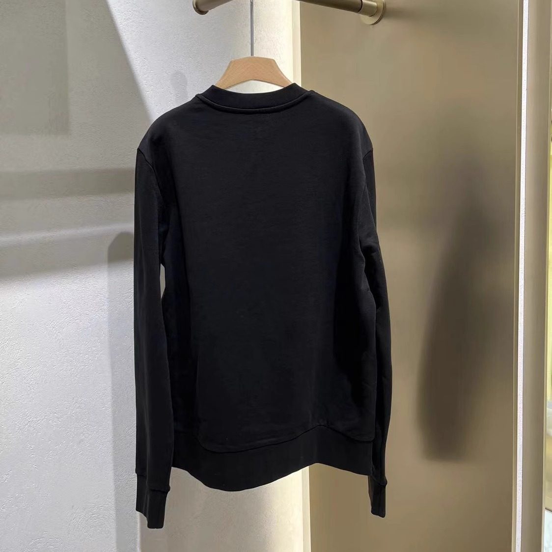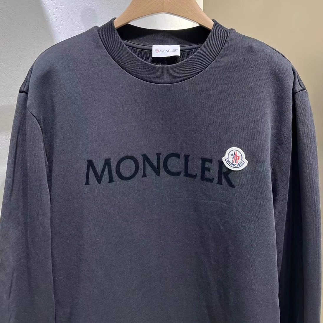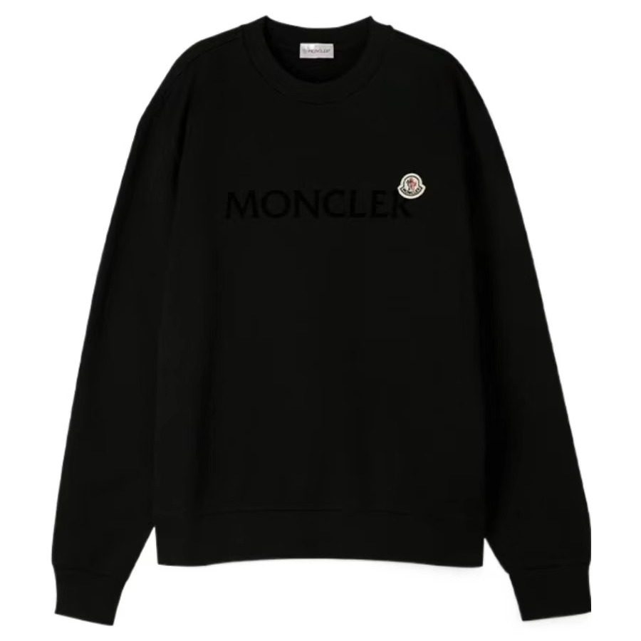 现货Moncler盟可睐 男士黑色经典植绒LOGO徽标圆领套头长袖卫衣