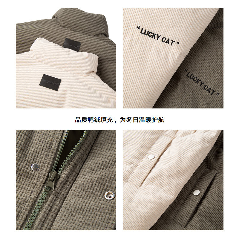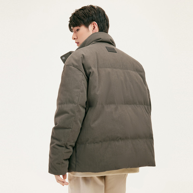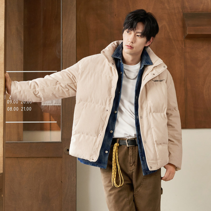 清仓gxgjeans男装上衣外套冬季华夫格绒感保暖立领羽绒服男