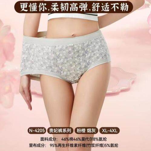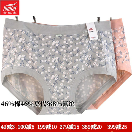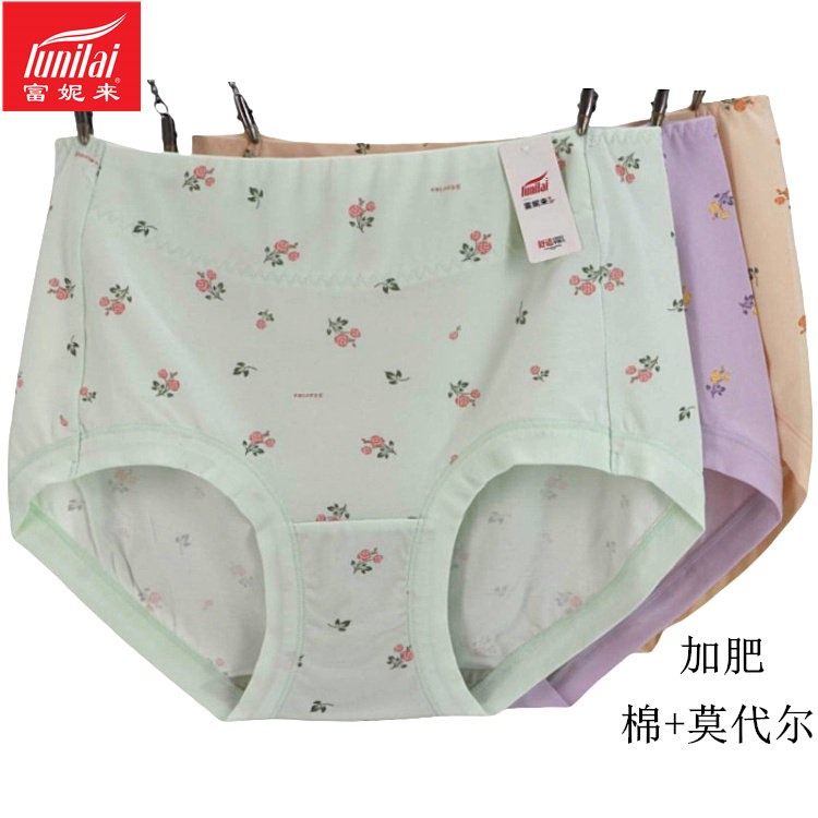 2条 富妮来女士加大码加肥4328棉莫代尔高腰200斤平角内裤头4205