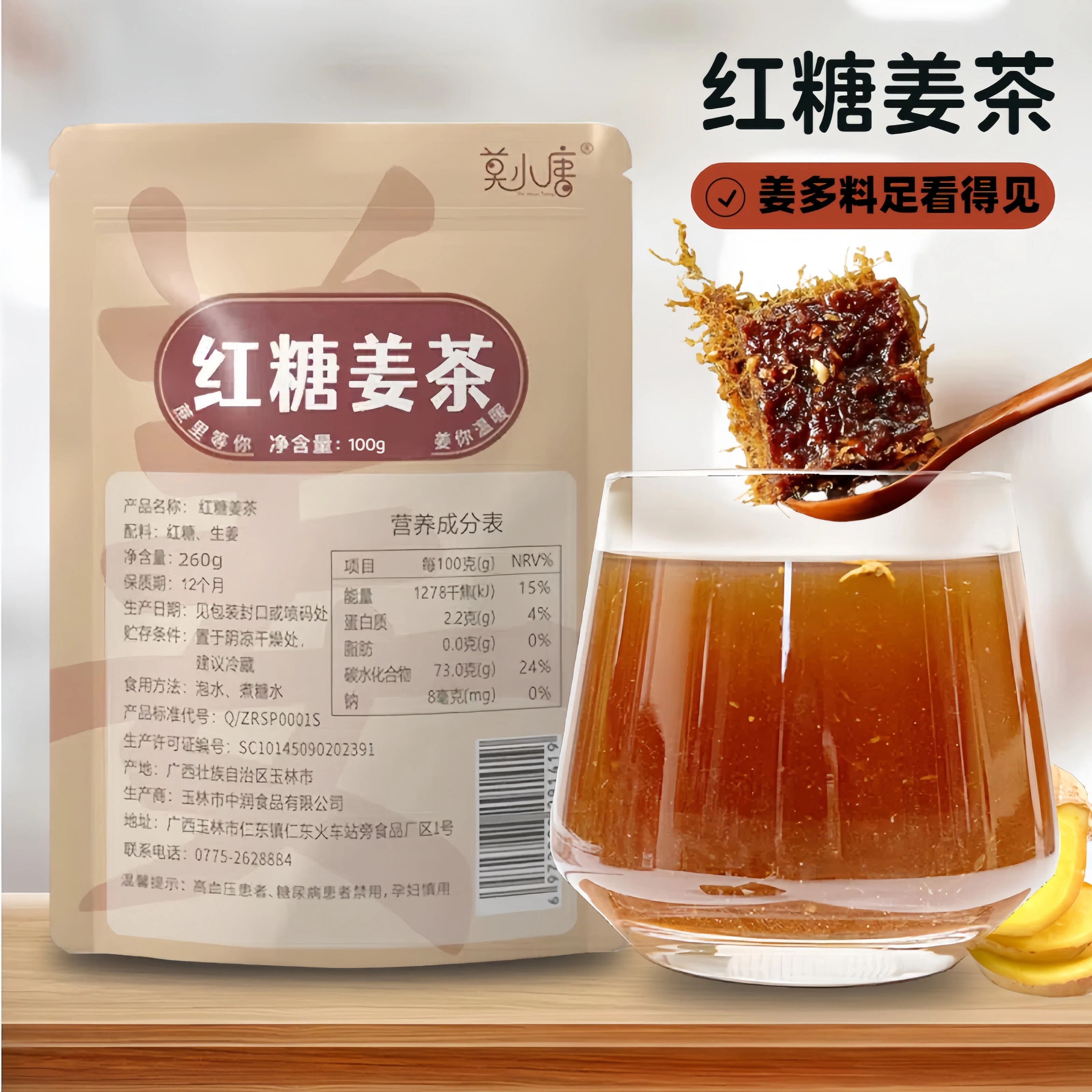 莫小唐红糖姜茶广西甘蔗老姜红糖姜母红糖生姜冲饮方块红糖罐装
