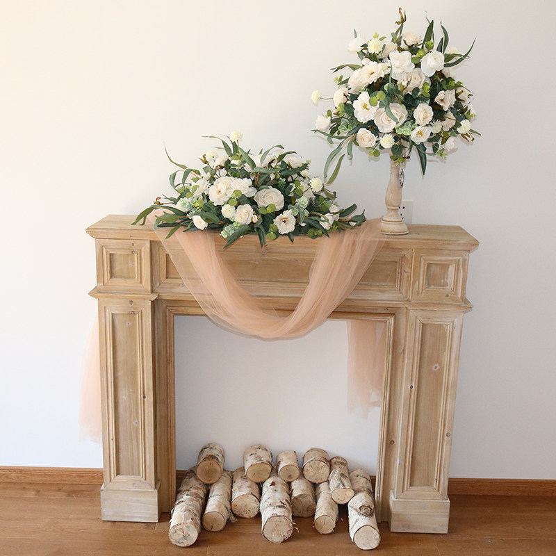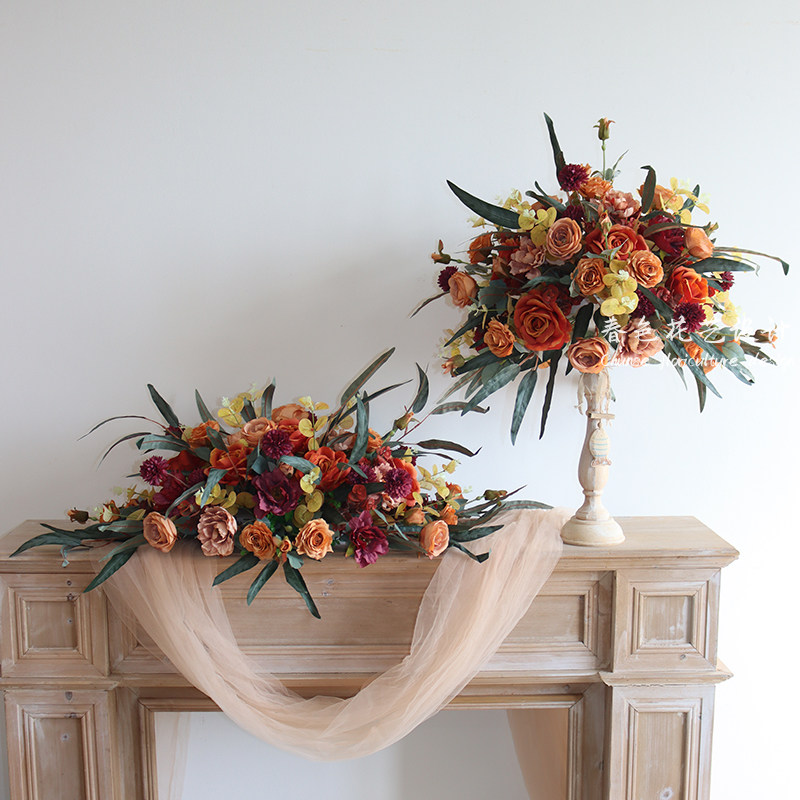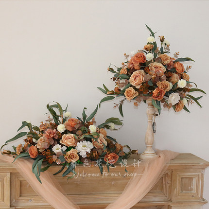 新款欧式复古桌花烛台套装婚礼布置婚庆布场布景道具用品仿真绢花