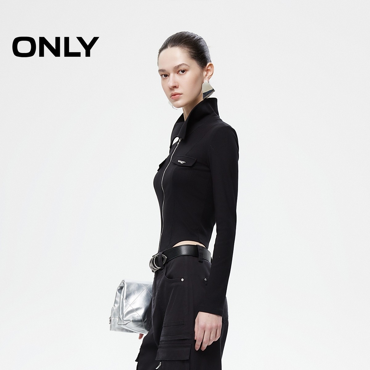 ONLY奥莱2025秋冬新款时尚辣妹风正肩翻领长袖开衫T恤女