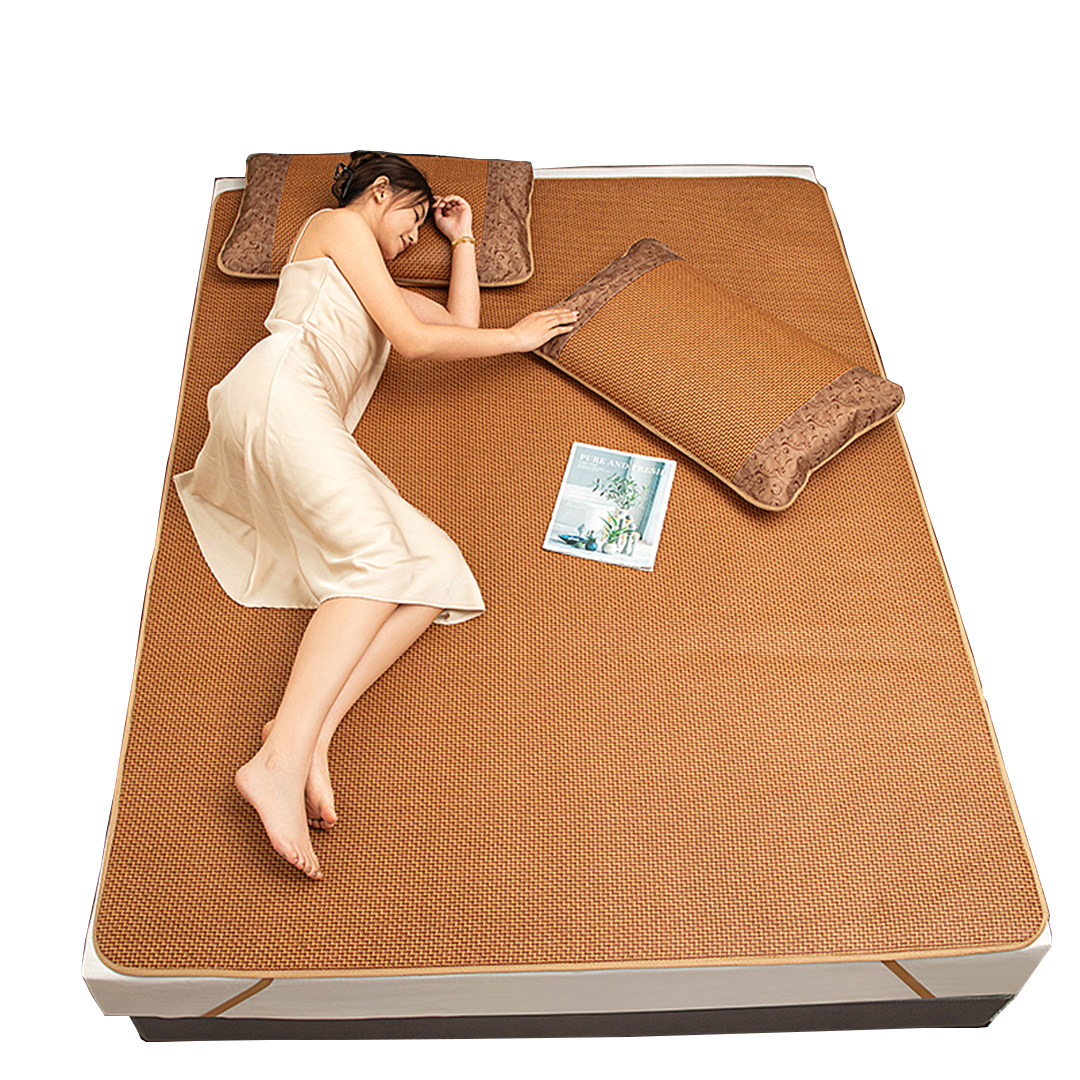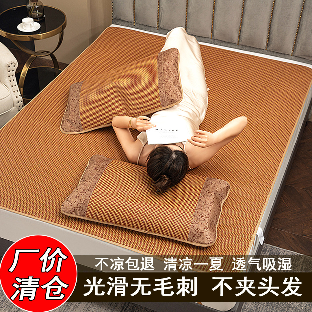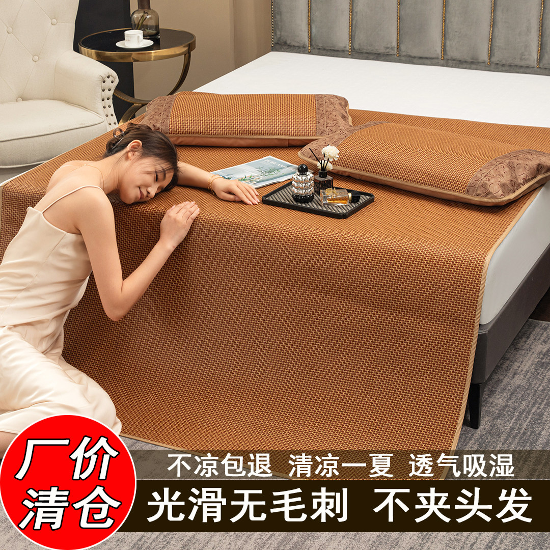 夏季藤席冰丝席0.9/1.2/1.5/1.8m单双人三件套草席可折叠宿舍凉席