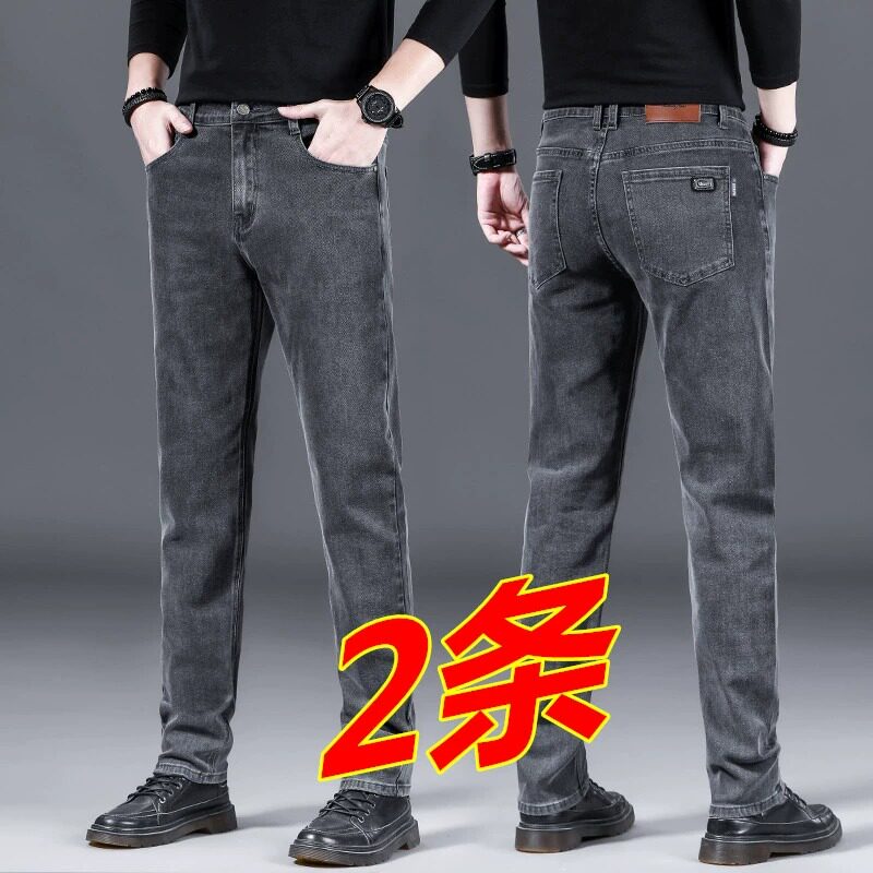 啄木鸟2025款春秋季牛仔裤男修身直筒百搭弹力冬季加绒休闲牛仔裤