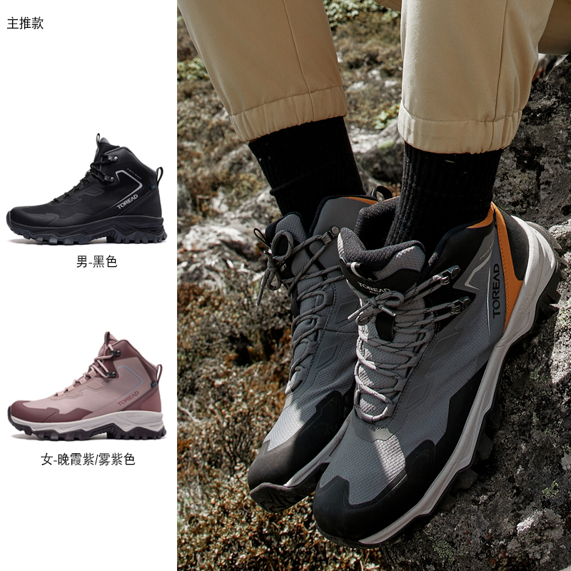 探路者登山鞋男秋冬新款户外防水轻量耐磨高帮徒步女鞋