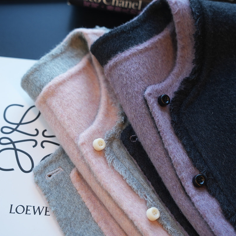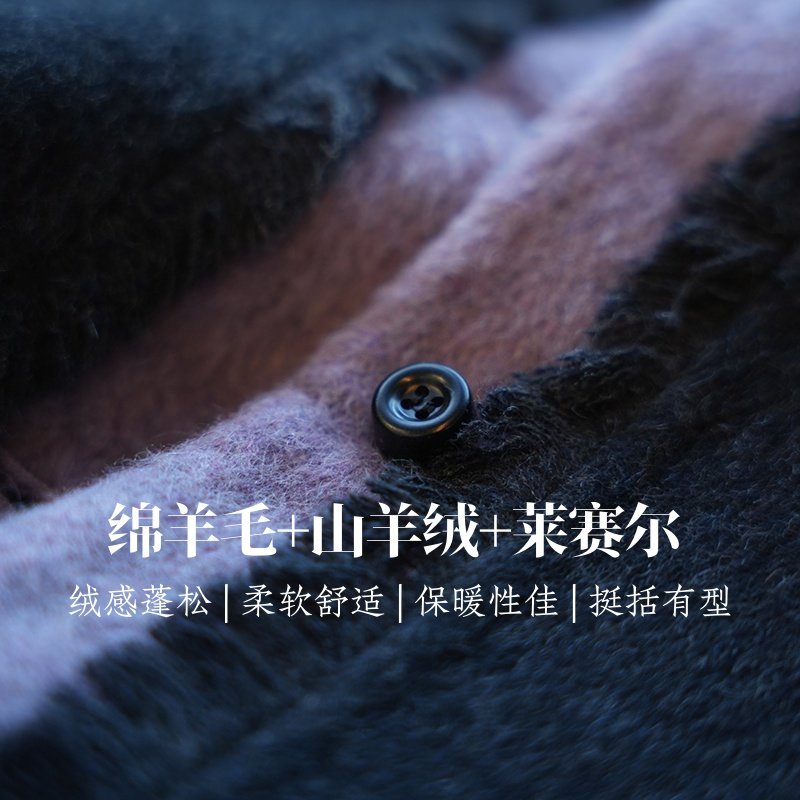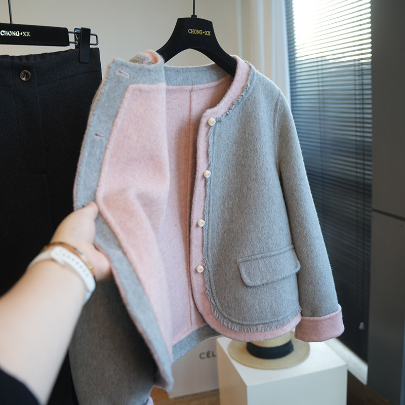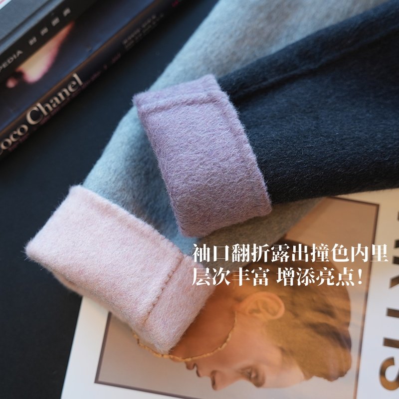 虫小小 羊绒羊毛撞色假两件毛边双面呢短款呢大衣女外套冬季A79M