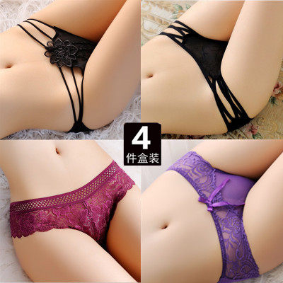 4条礼盒装黑色性感内裤女透明无痕低腰透气蕾丝面料棉时尚三角裤