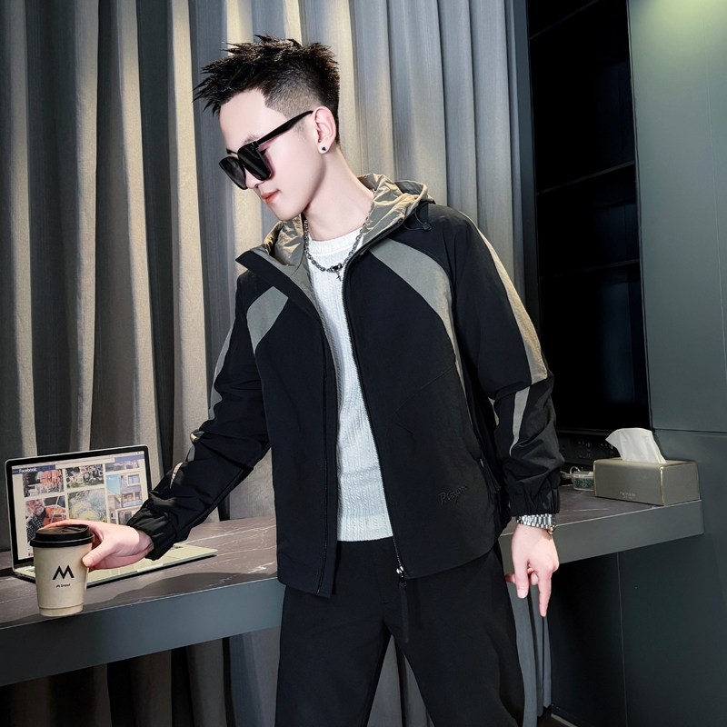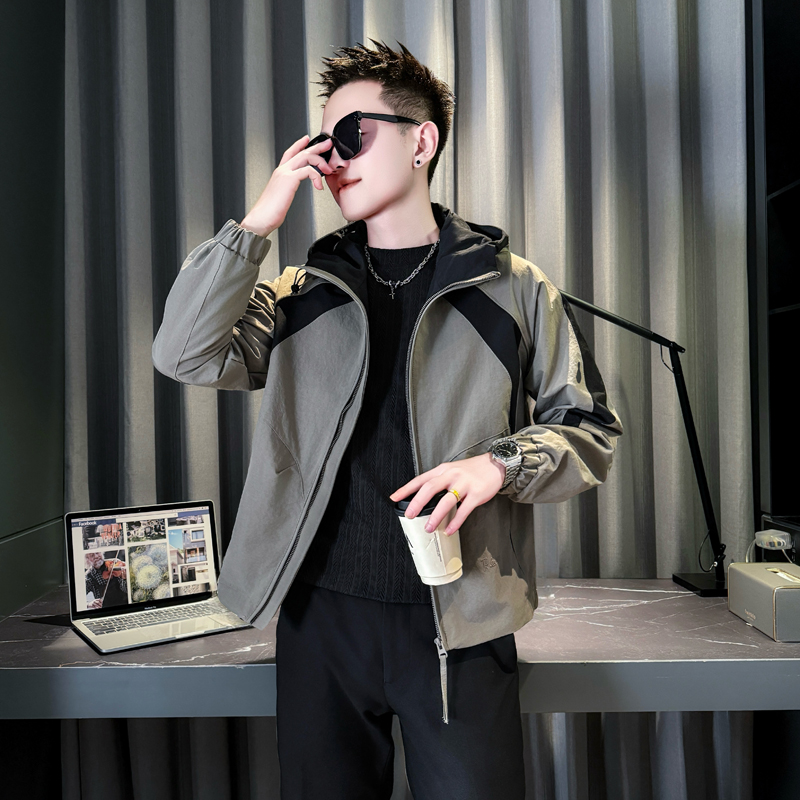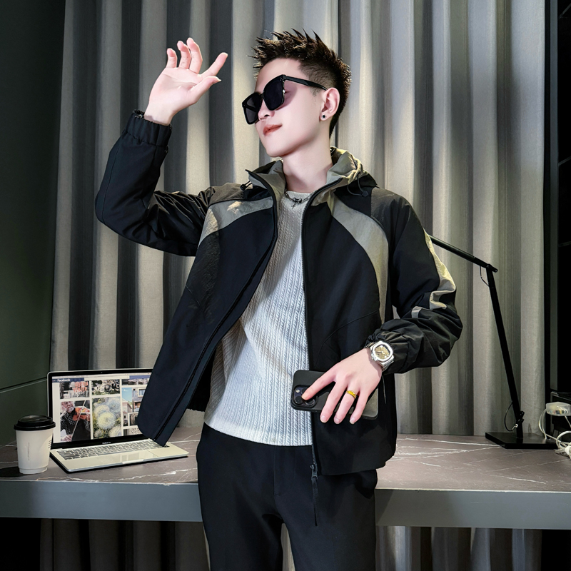 小码男装XS号潮流拼色连帽外套