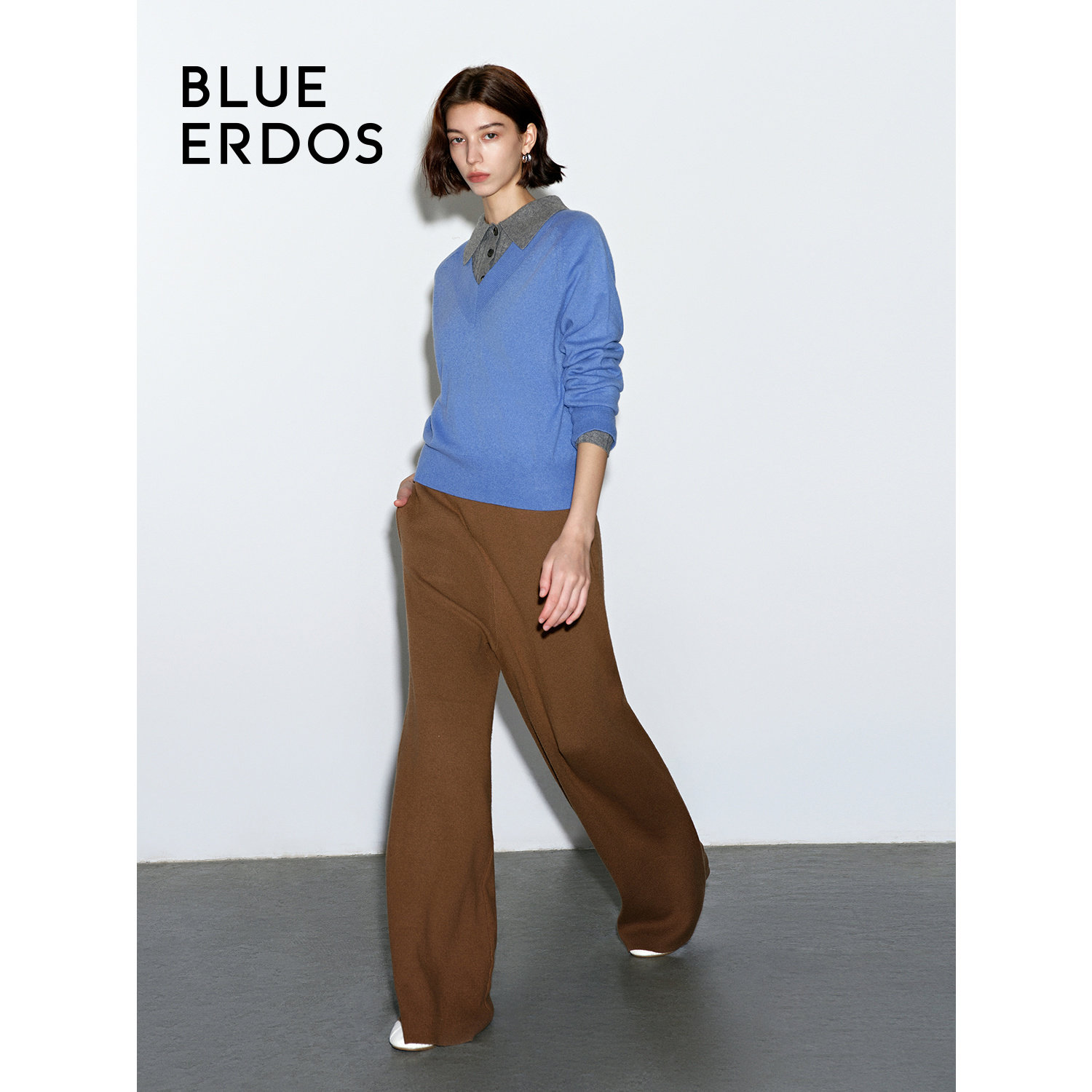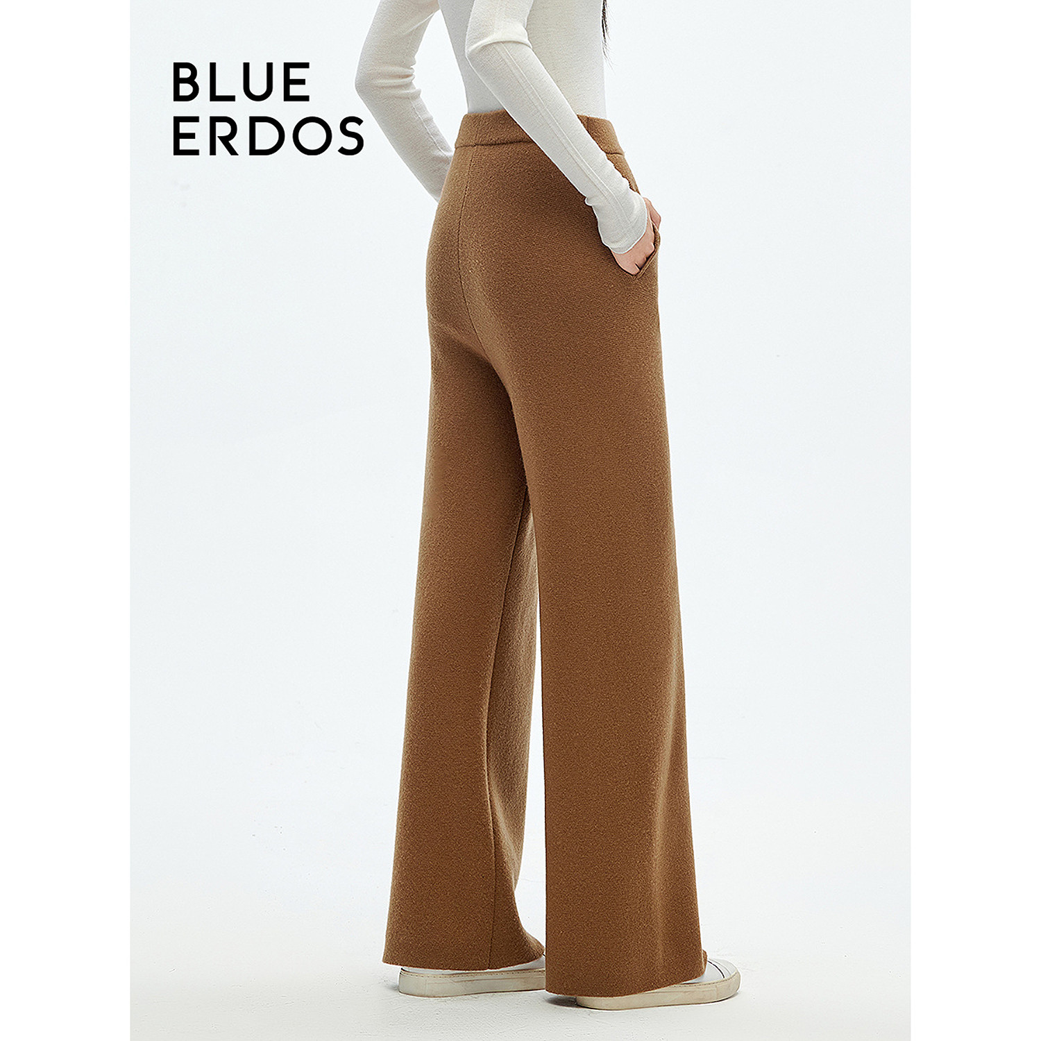 BLUE ERDOS 冬季复古简约绵羊毛羊绒阔腿针织休闲长裤女