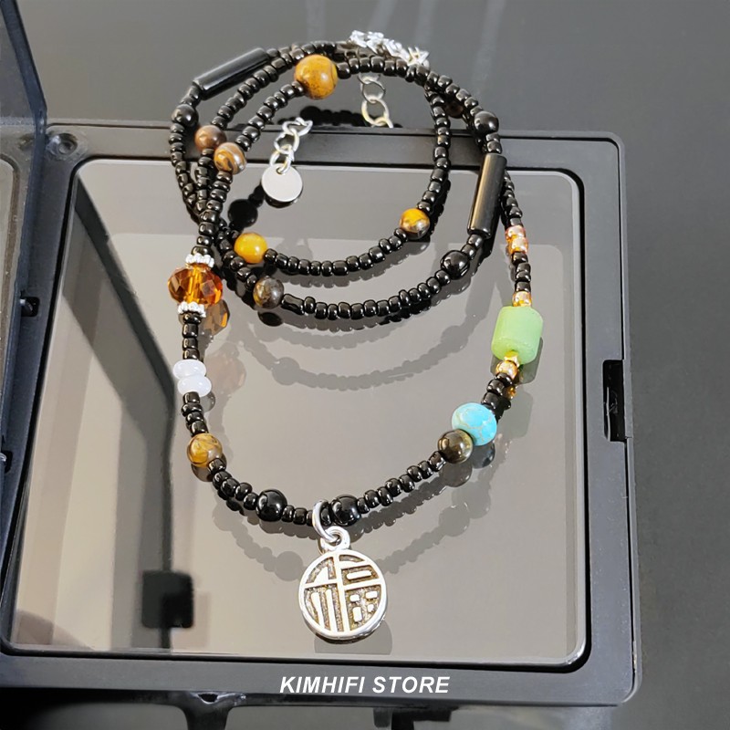 2025年新款爆款小醒狮原创手工串珠福牌锁骨链小众国风轻奢项链