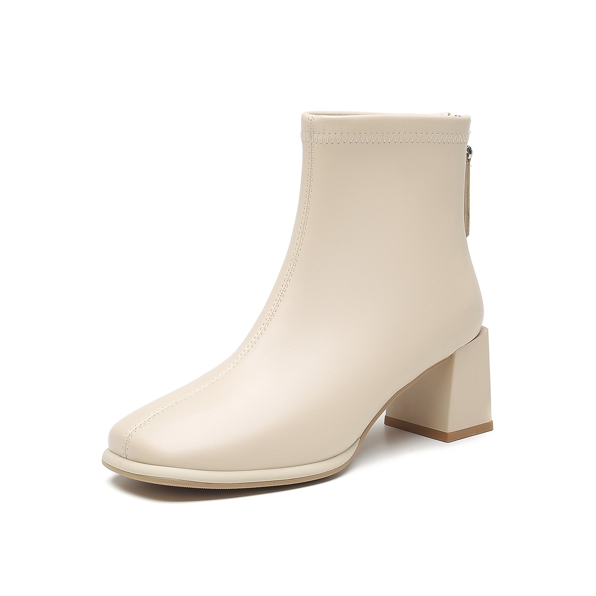 大东切尔西短靴女2025新款秋冬粗跟高跟鞋白色加绒靴子法式小踝靴