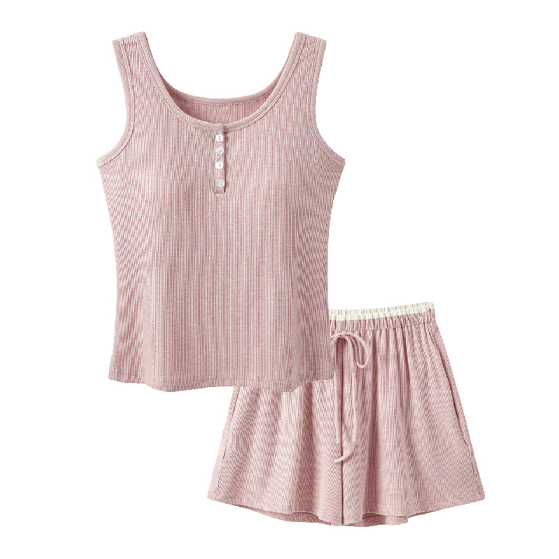 都市丽人莫代尔螺纹吊带睡衣女带胸垫免穿Bra可外穿家居服背心夏