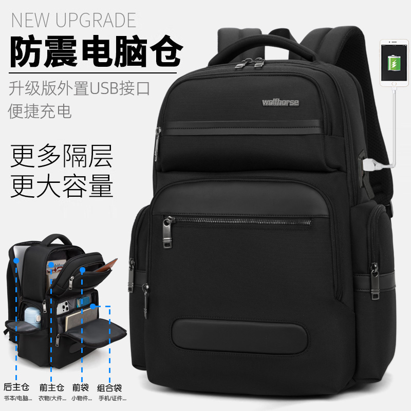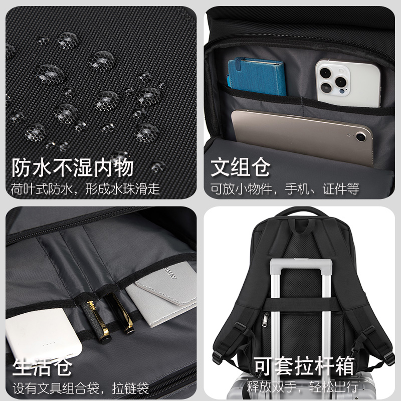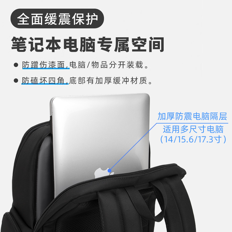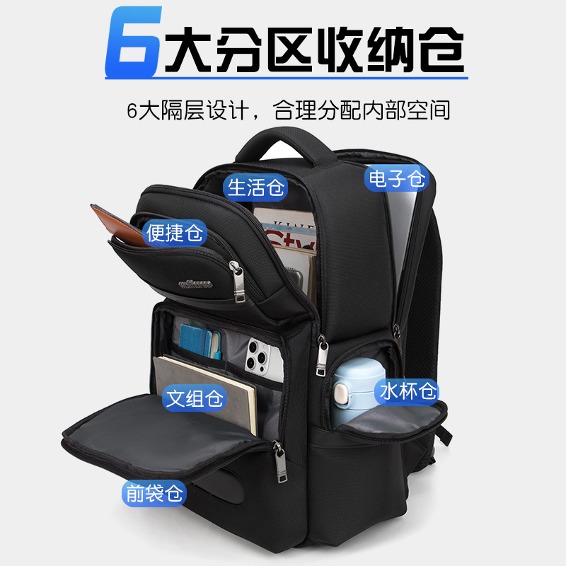背包男士多层双肩包商务休闲学生书包大容量出差旅行多功能电脑包