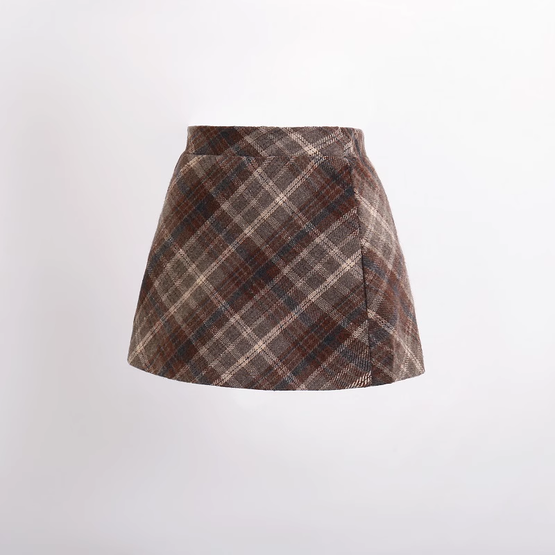 儿童秋冬洋气高腰半身裙2025女童咖色毛呢格子包臀裙韩版女孩短裙