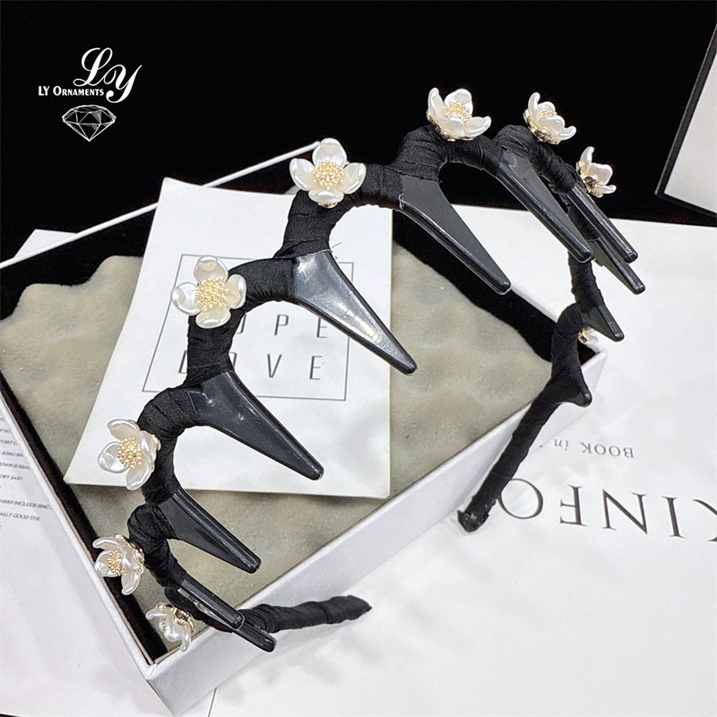 韩国新款珍珠发箍女高颅顶显脸小带齿防滑波浪发卡碎发头箍发饰新